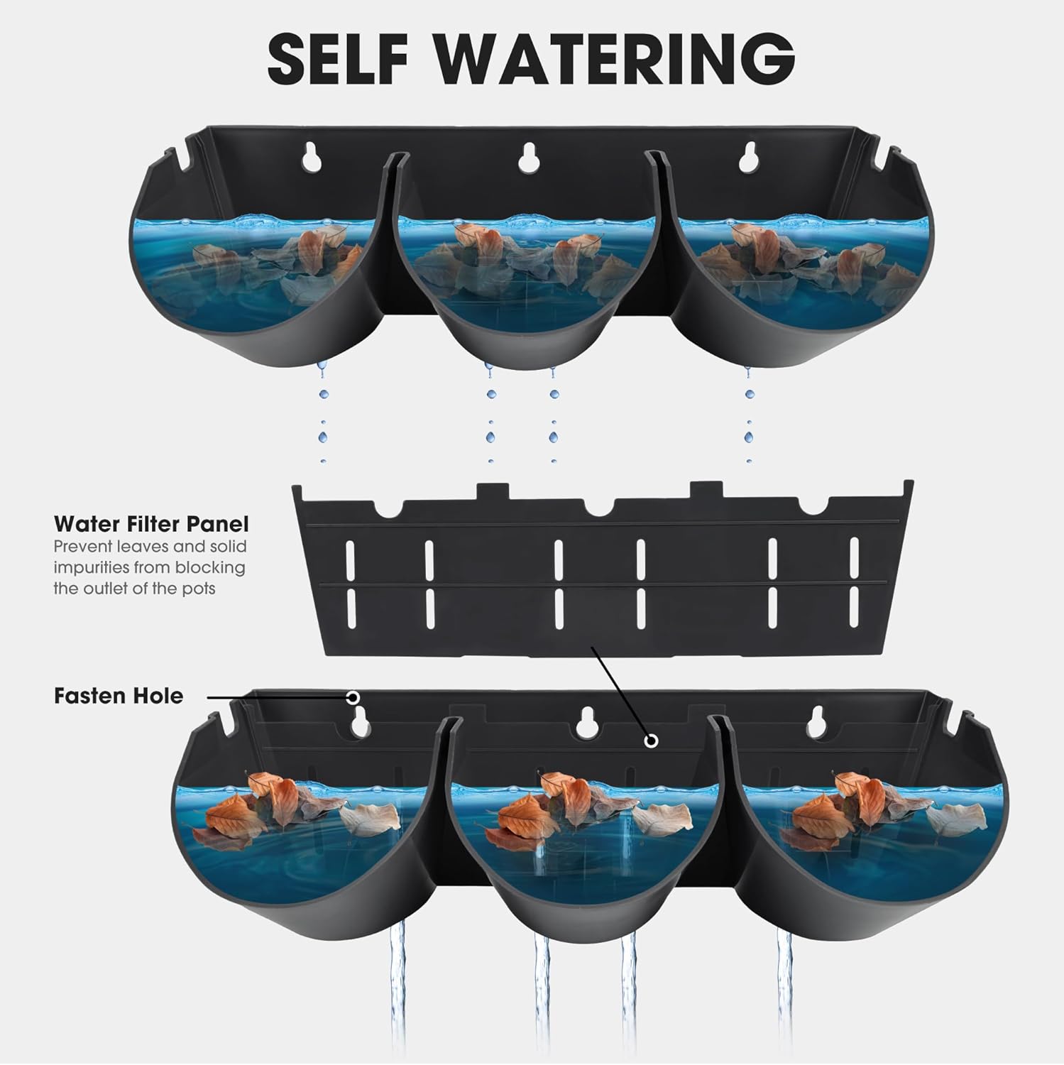 Worth Garden Upgraded 12 Sets (36-Pocket) Self Watering Stackable Vertical Planters - Wall Mounted Plastic Plant Grow Pots fr Strawberries Flowers Herbs - Indoor Outdoor Green Wall Decoration (Black)