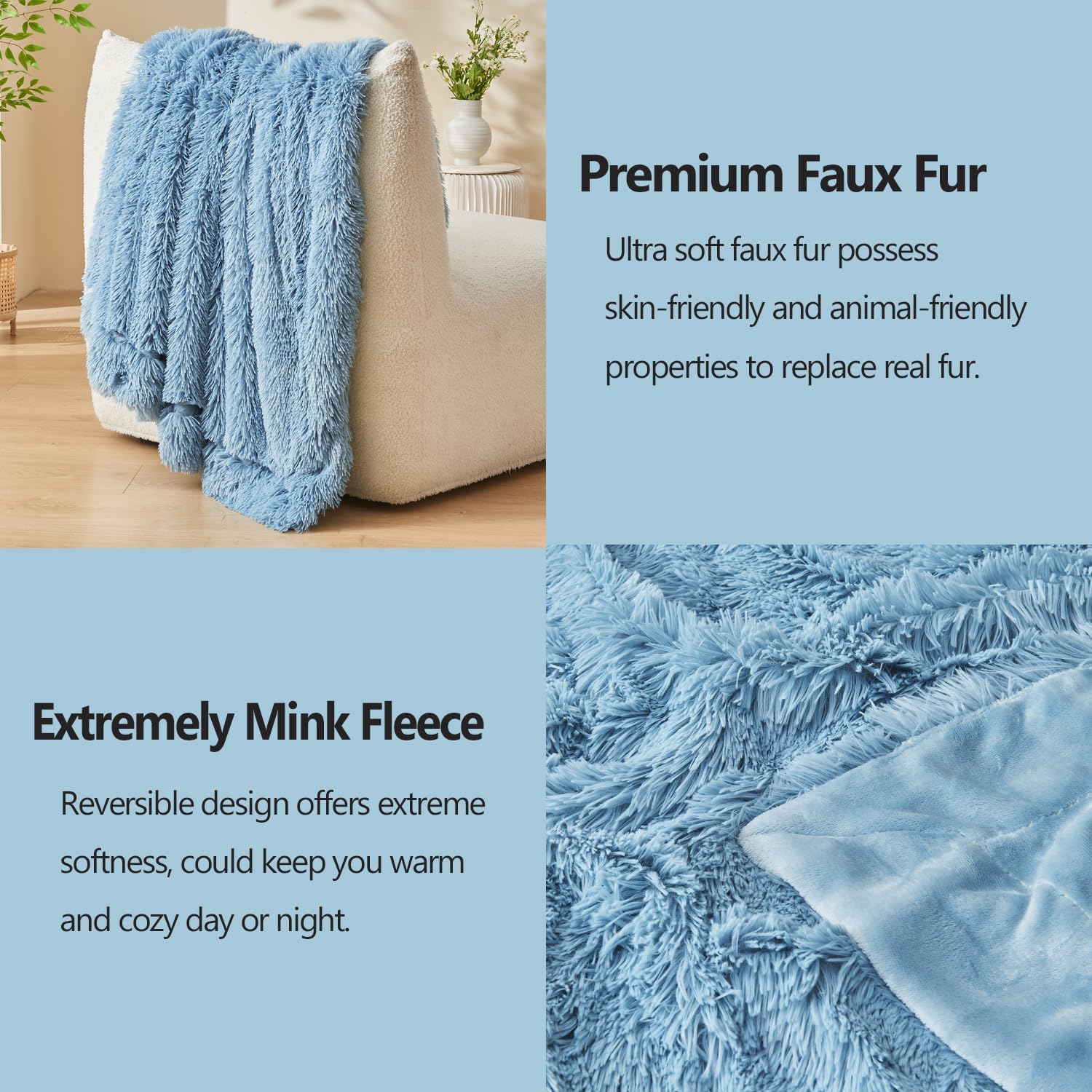 GONAAP Fuzzy Faux Fur Throw Blanket Light Blue Super Soft Cozy Plush Fuzzy Shaggy Blanket for Couch Sofa Bed (Light Blue, Throw(50"x60"))