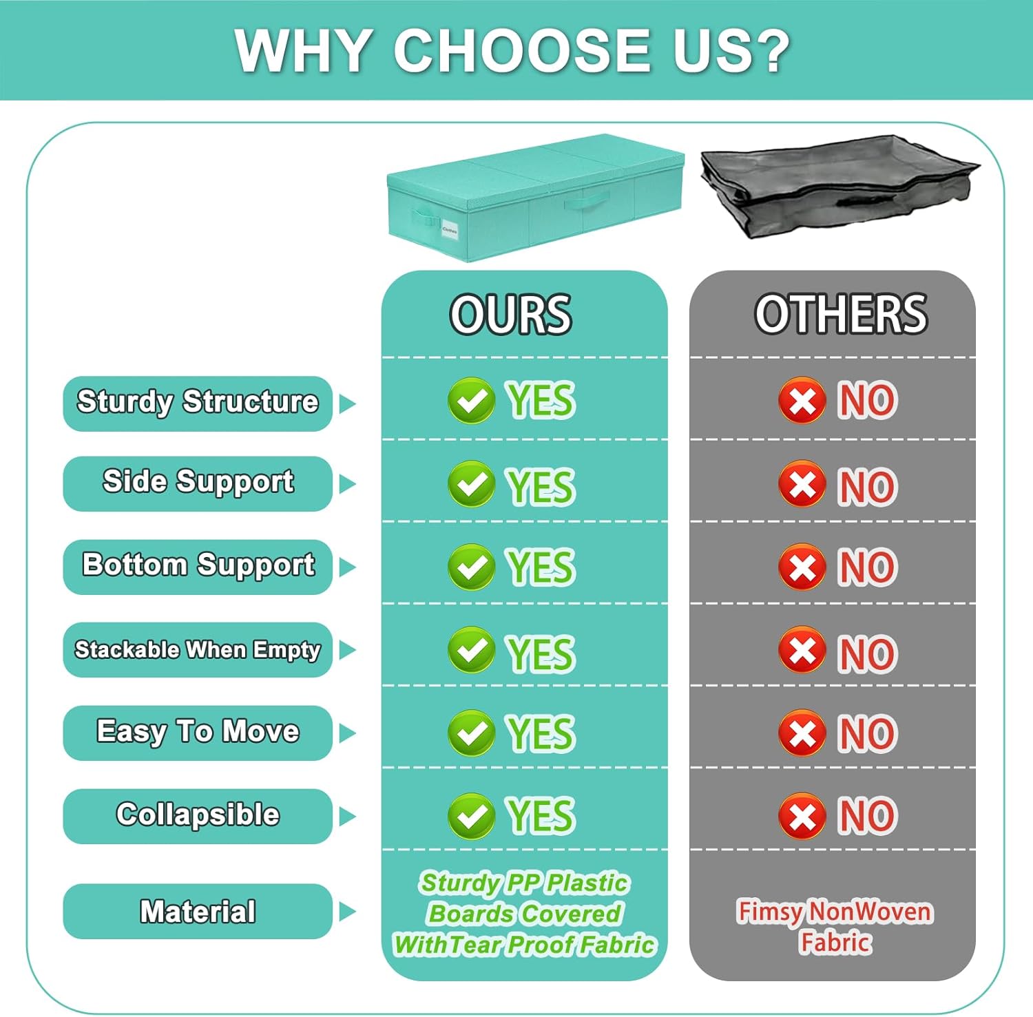- ๐STURDY STRUCTURE & STURDY HANDLES: 3 Reinforced sewn-in handles make it easy maneuverability and convenient for you to carry and pull out from under the bed; handy bins make excellent blanket organizers and storage; Lasts longer than underbed storage containers plastic; Keep your bedroom neat and tidy with storage bins with lids that fit your room's existing decor and theme