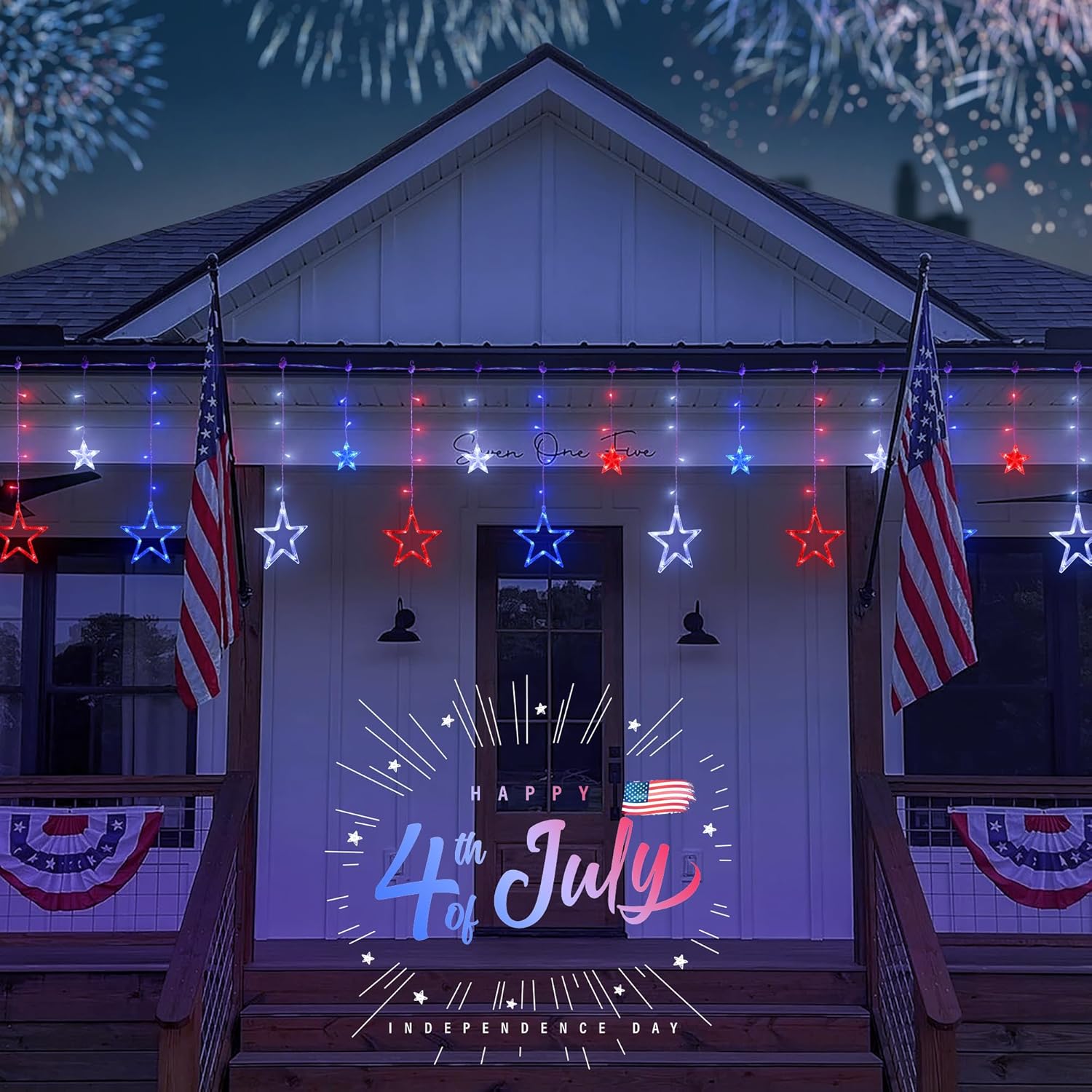 - Widely Used:The Patriotic star Icicle Lights are Connectable,could be extended to 3chains to 24.6FT.It is long enough decor for 4th of July Independence Day, Labor Day, President's Day, Memorial Day, Veterans Day, American parties and many other celebration occasions decorative.