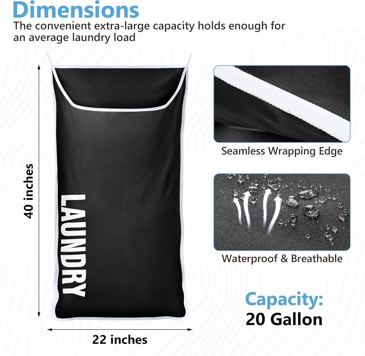 Hanging Laundry Hamper Bag XL 40x22", Space Saving over the Door Storage Bags, Behind the Door Hampers for Dirty Clothes & Wall Mounted Basket for Bathroom, Organizer for Small Room Spaces RV