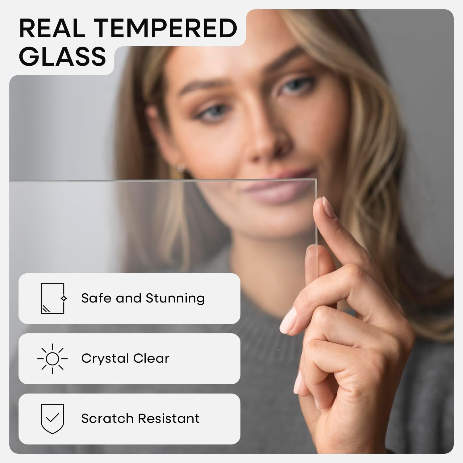 - GALLERY GRADE GLASS, TRUE CLARITY. Why settle for cloudy plexi? Our ultra-clear tempered glass sharpens every detail and adds instant polish to your photo or print.
