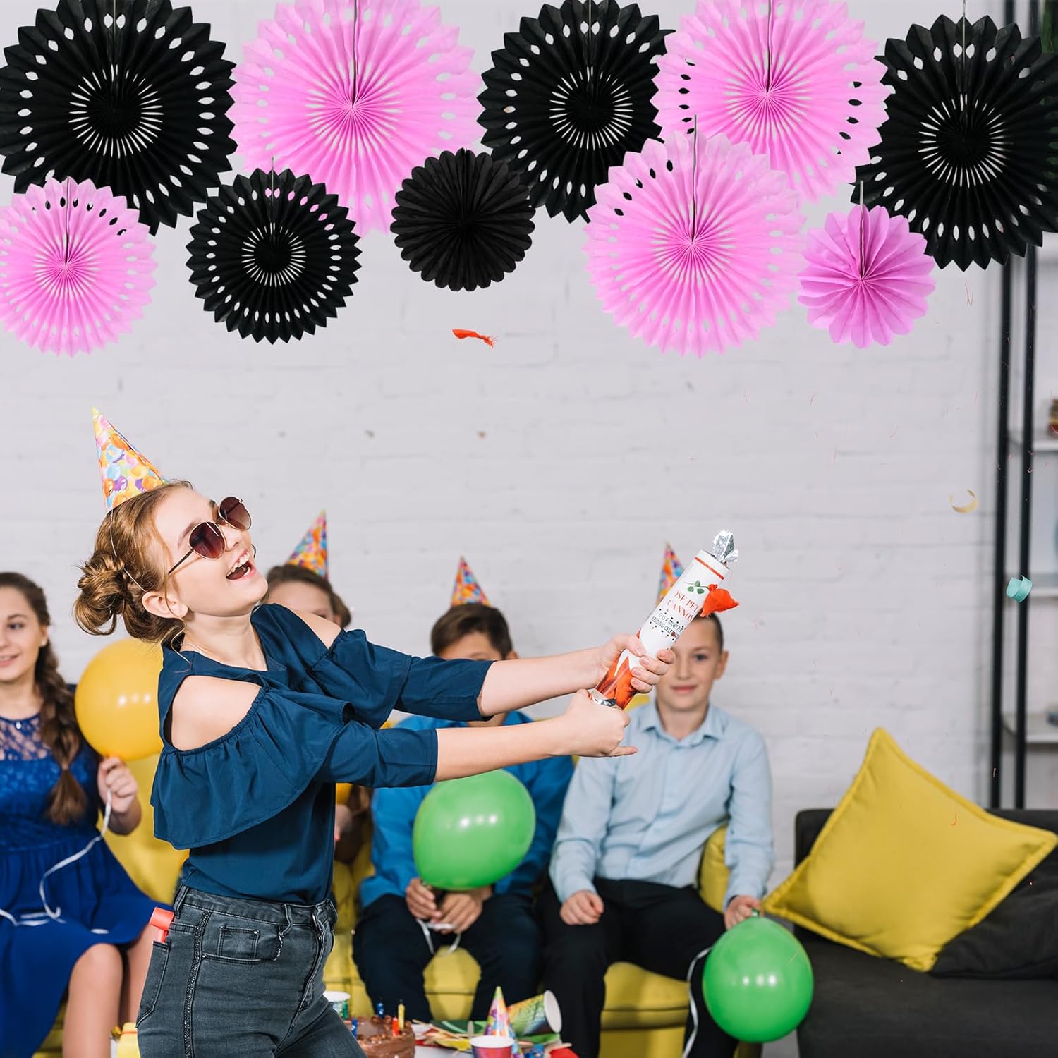 - 【Hanging decoration kit】: includes 10 paper flower fans of 5 sizes, among which the paper flower fan size is 16 inches * 2, 12 inches * 2,10 inches * 2, 8 inches * 2,6 inches*2, color include pink,black.