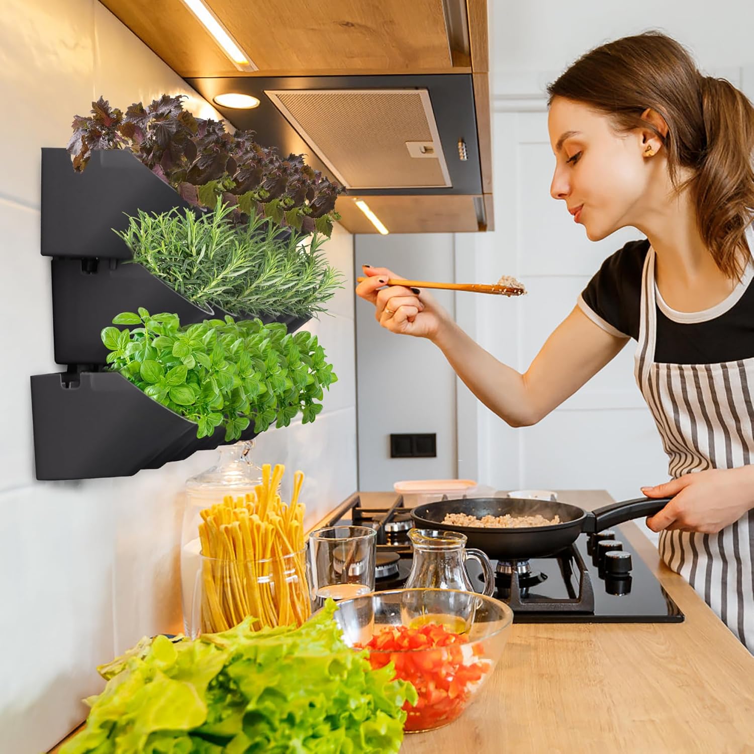 - INCLUDES 6 MODULAR WALL PLANTERS: Weโve included 6 3-pocket planters within our wall mounted hanging planter for you to create layers of potted plants for your vertical garden; Use a few wall hanging planter in one area or use them all; You can even add more layers to your vertical garden by purchasing additional compatible vertical garden pots; 6x 3-pocket planters make up 3.2ftยฒ, total of 18 plants required