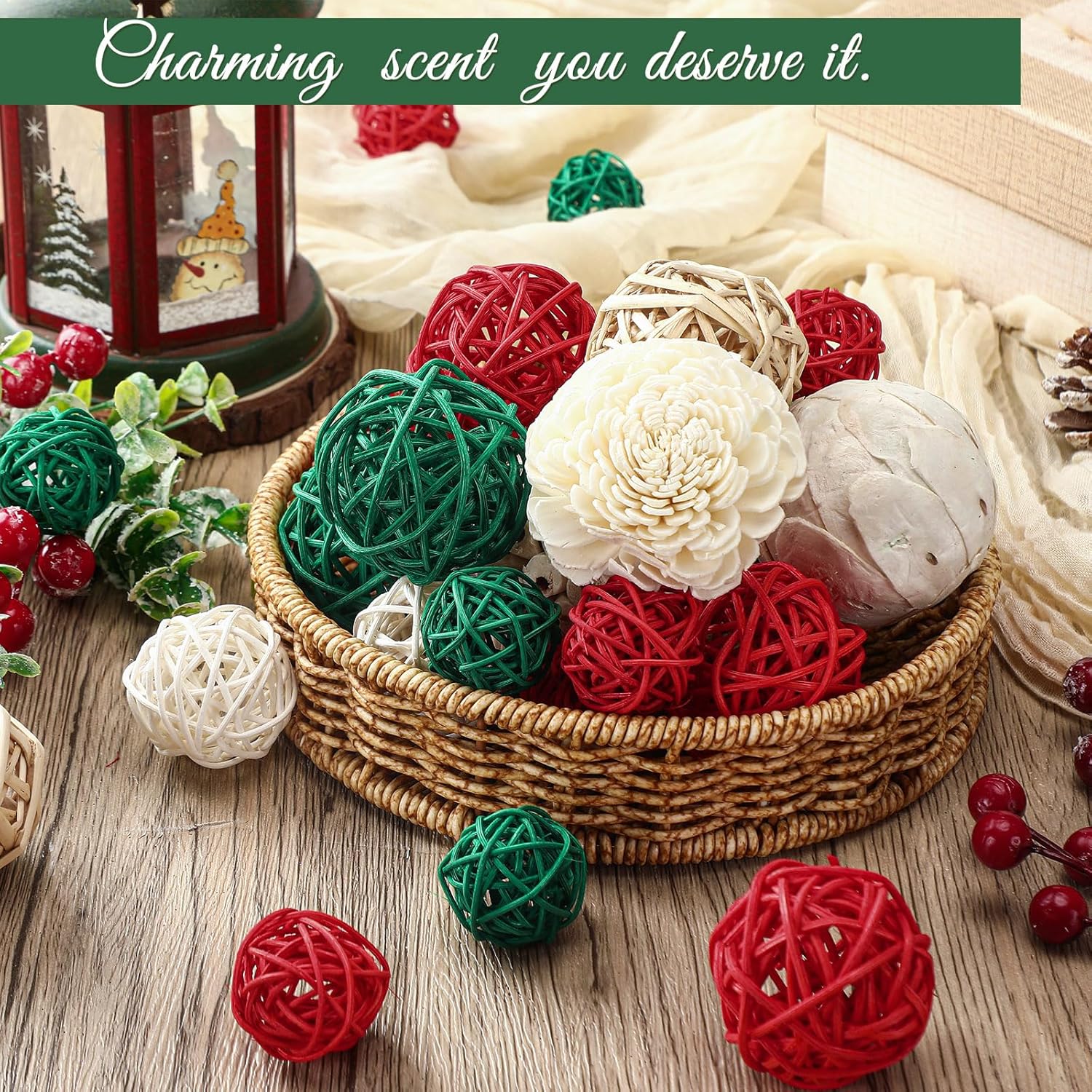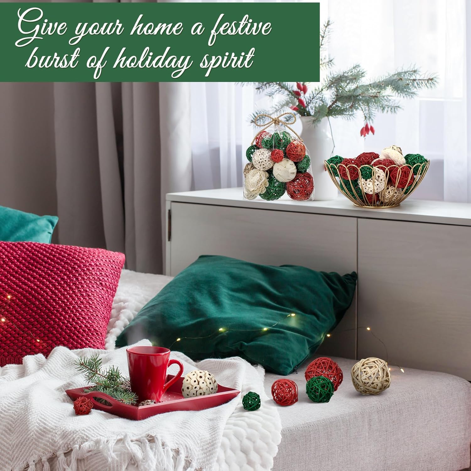 Riceshoot 2 Pack Decorative Balls Potpourri Bowl Filler Decor Natural Vase Bowl Filler Assorted Spherical Rattan Twigs Wicker Balls Cotton for Home Centerpiece(Red, Green, White)