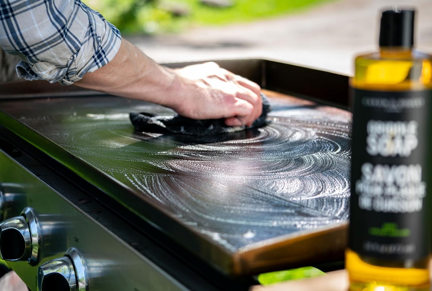 - CLEANS GRIDDLES | Includes our Griddle Soap to gently clean and maintain the natural seasoning on all griddle surfaces. Made using traditional soap making methods and free of sulfates, phosphates, parabens & petrochemicals! Gentle on your griddle, and on your hands!