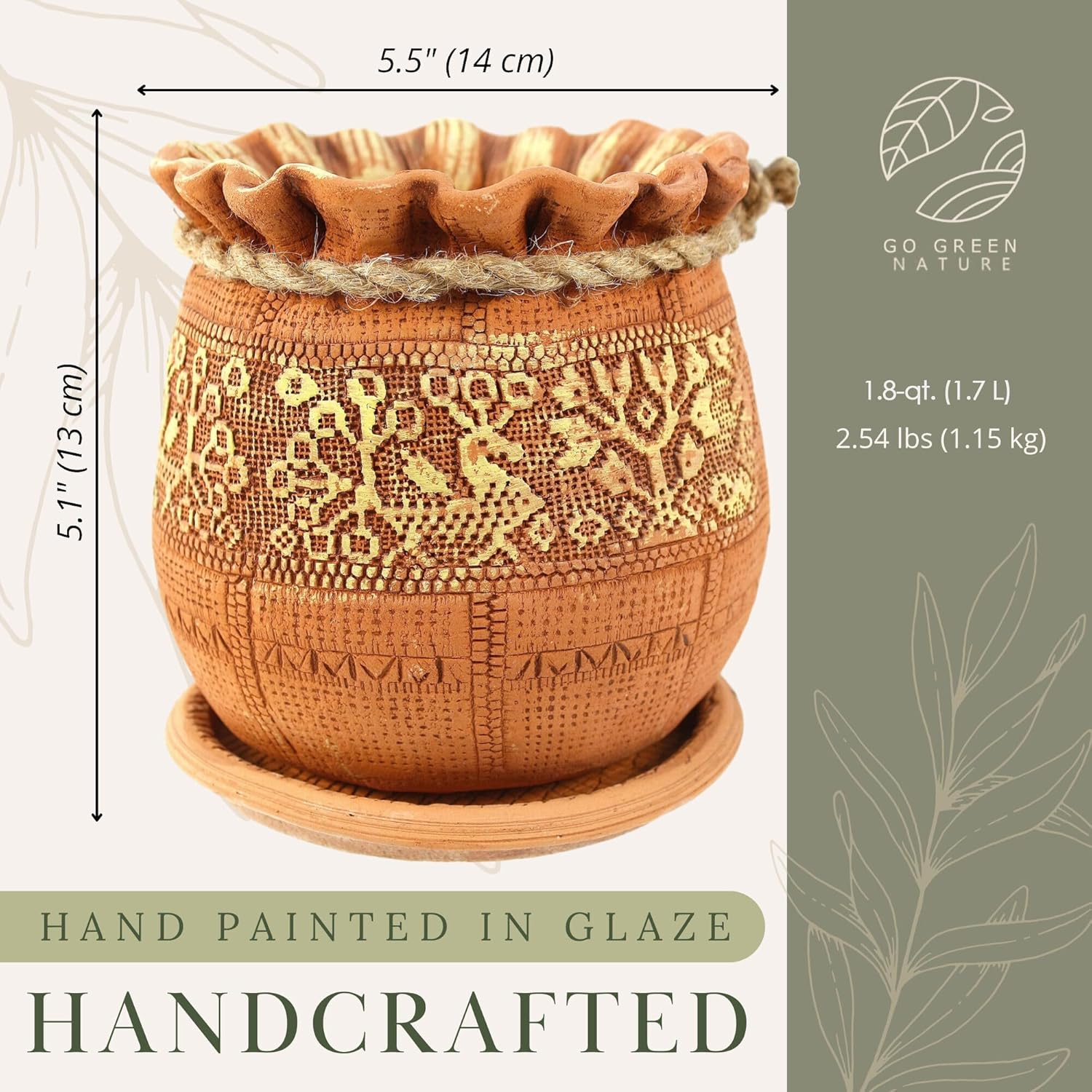 - 🌺Material: The flower pot is handmade from high-quality ceramics. Natural clay materials allow air and water movement through the sides of the pot. Air movement stimulates root growth, which results in healthier plants. Clay pots improve soil aeration and protect your plants from staying wet for too long.