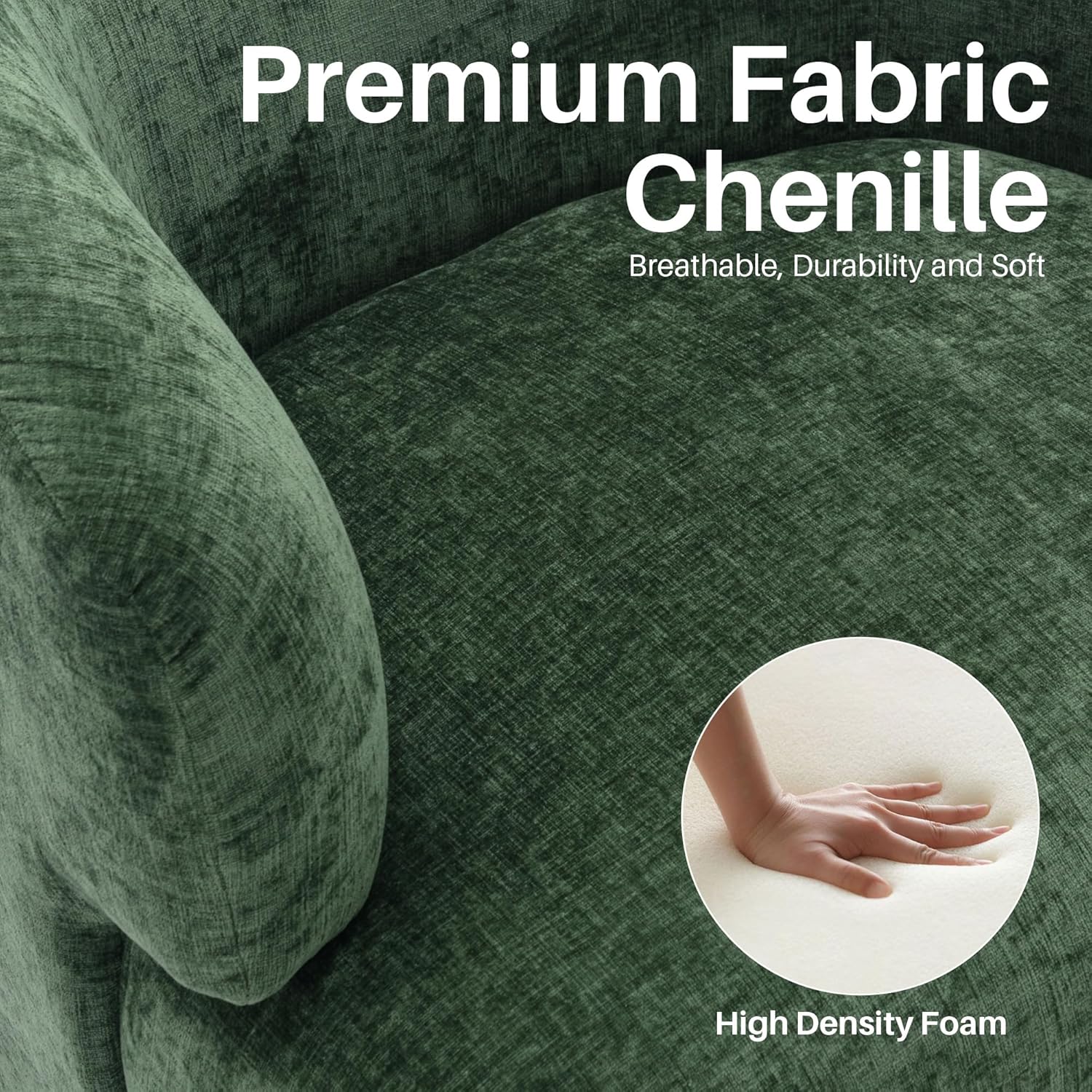 Swivel Accent Chair, Chenille Barrel Chair for Living Room, Cozy Round Boucle Arm Chair, Metal Base for Club Nursery Bedroom, Green