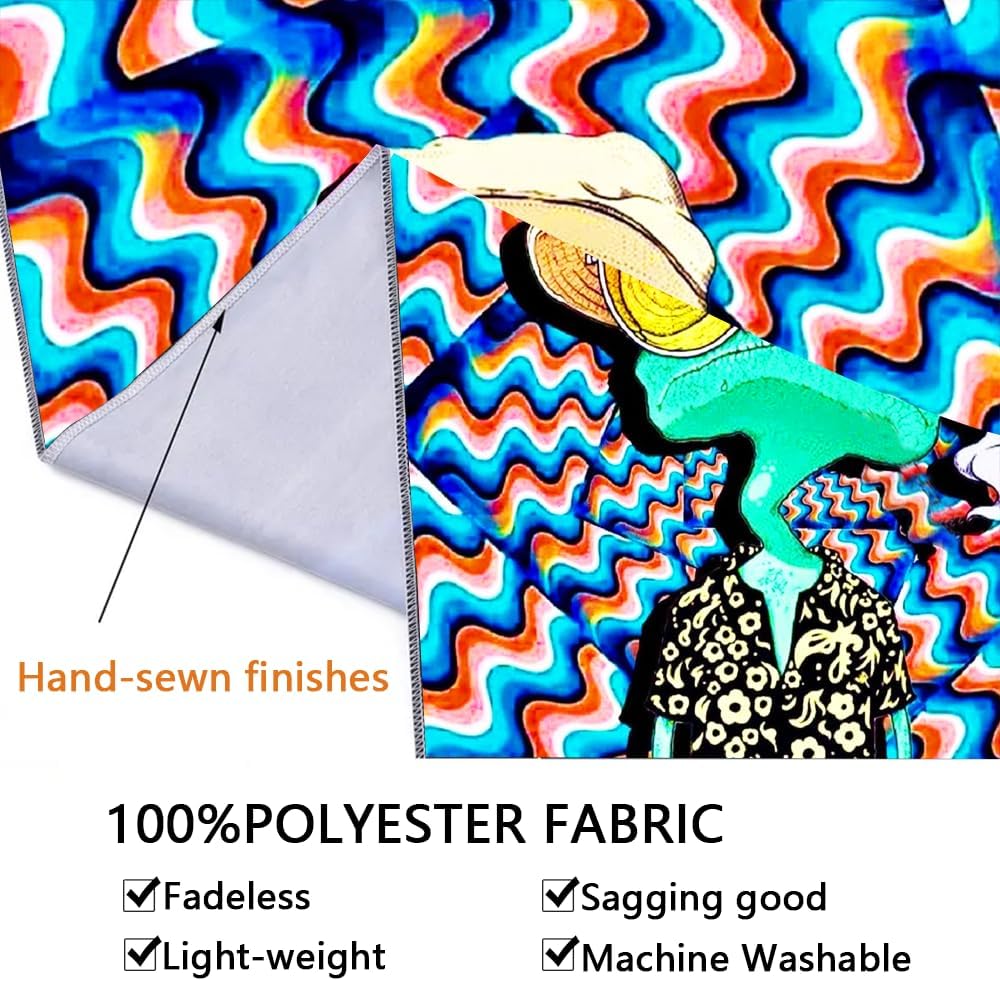 • 🌞 High-Quality Material: Made from 100% polyester, ADDWel tapestry is durable, lightweight, and easy to clean. It can be washed and ironed at low temperatures without losing its colors. The fabric is also soft to the touch and won't irritate your skin, making it perfect for use as a bedspread, wall hanging, or beach blanket.