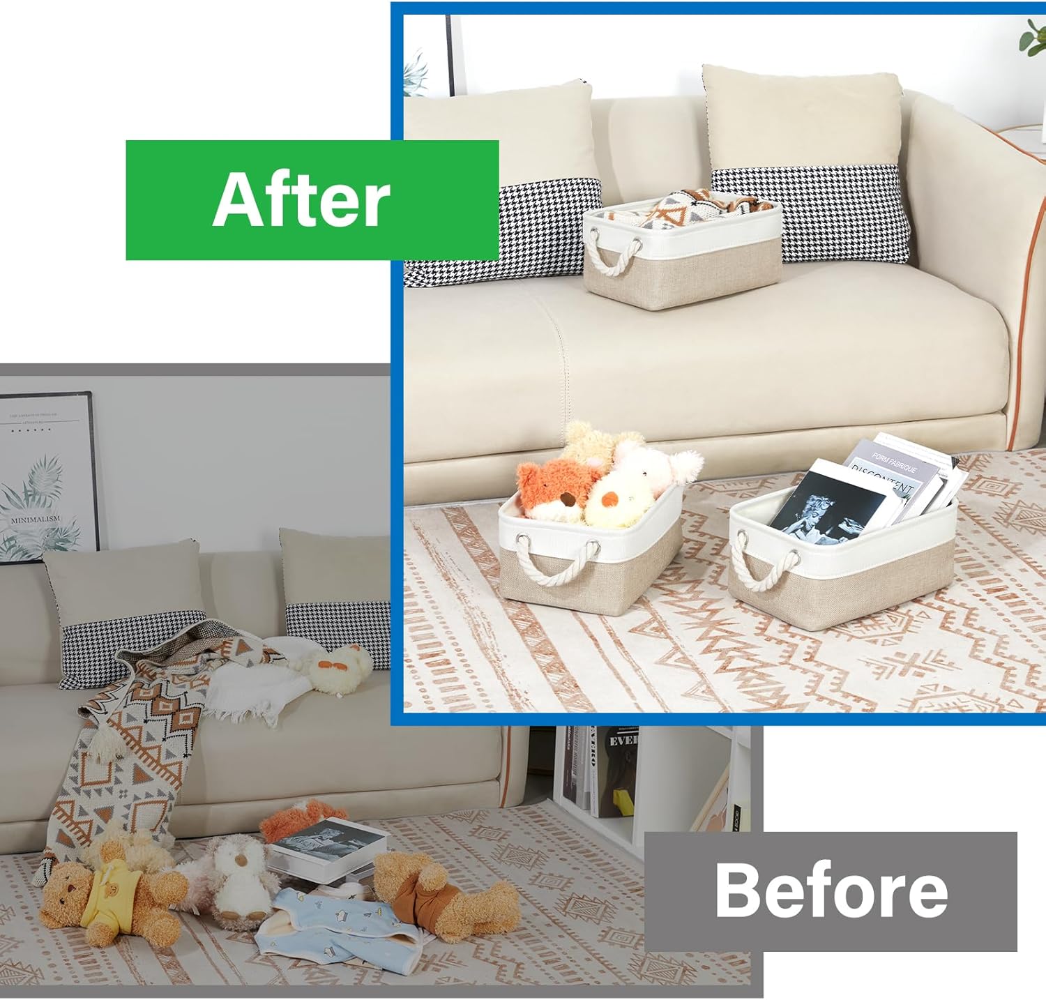 - Multipurpose Storage: These linen baskets for organizing provide a very woderful storage solution in your home, dormitory or travel to meet many different storage needs such as organizing snacks, towels, blankets, clothes, tissue papers, shoes, books, magazines, newspapers, CDs, games, etc. Its storage capacity can keep the room tidy and beautiful, shelf or closet baskets for organizing and gift baskets for empty are wonderful choices