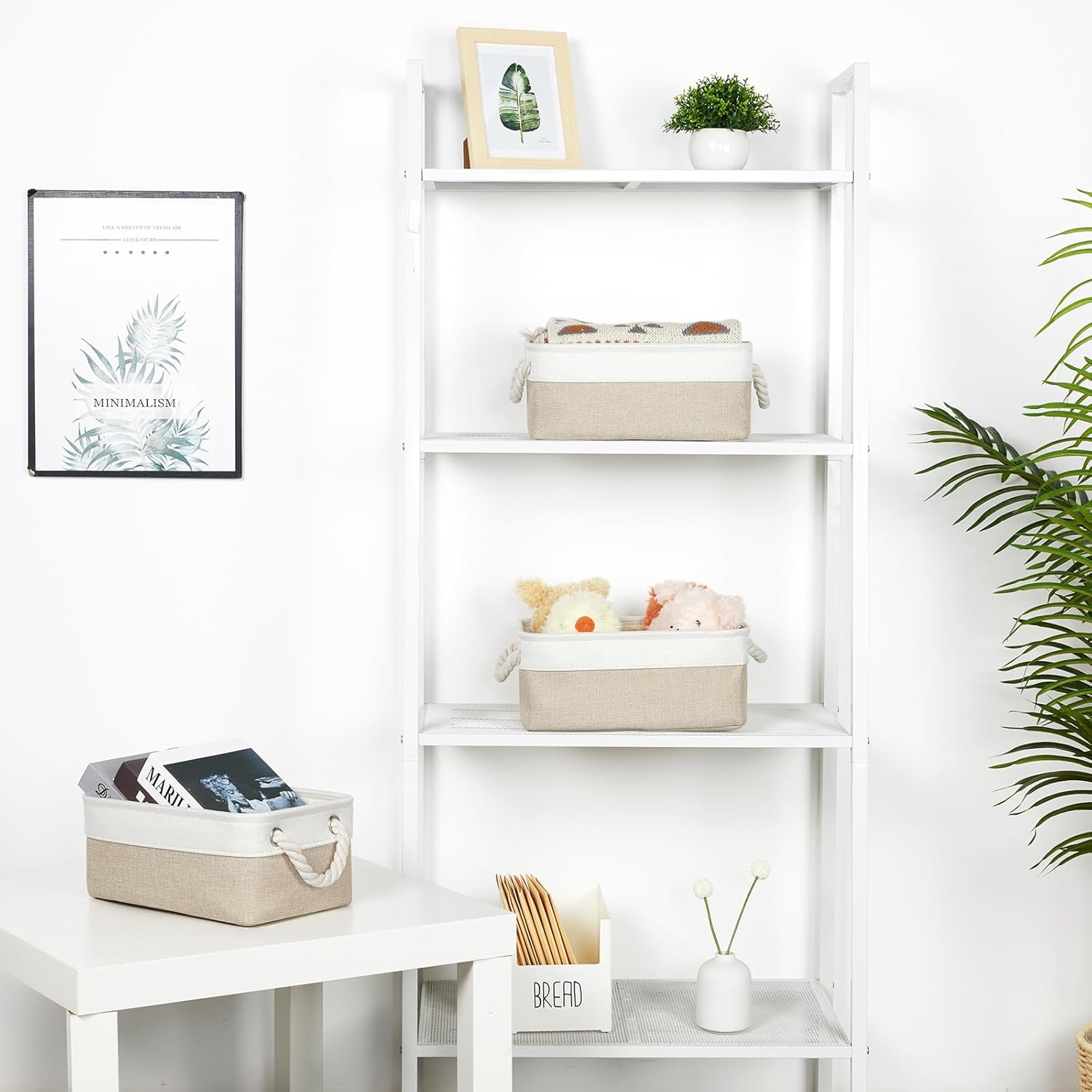 Bidtakay Small Baskets Fabric Storage Baskets for Organizing 3-Pack 12x8x5 Inch Collapsible Storage Bins for Shelves Canvas Bins for Closet Organization Baskets Storage Linen Closet S-White&Beige