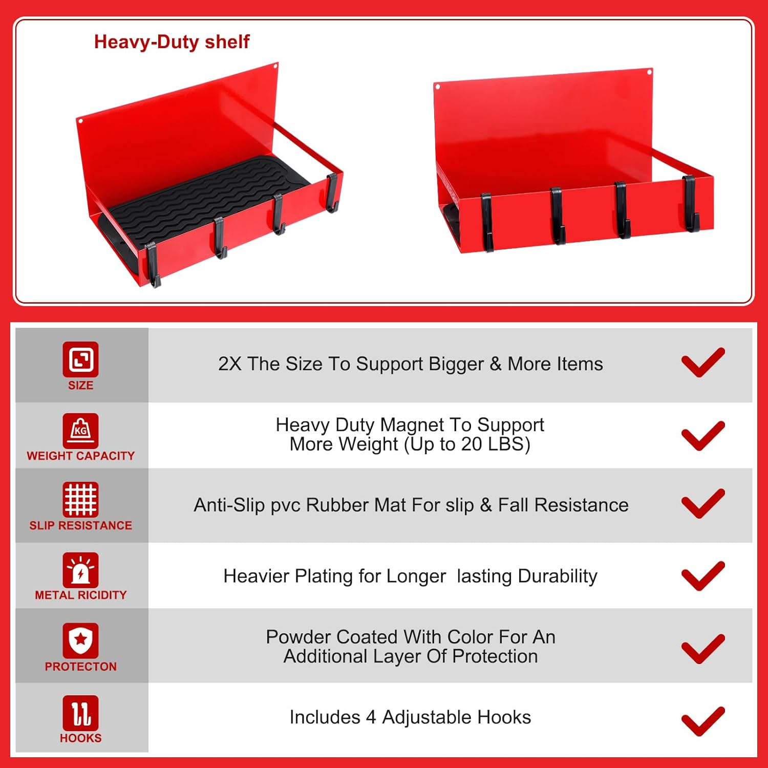 - Easy to Use for Saving Space: our magnetic shelves do not need drilling or installation, you just need to open the package, put the non slip pad on the shelf, and then secure it to the metal surface; The compact and efficient design of this 12 x 6 x 6 inches magnetic tool box serves as a space saving solution, helping keep your working area neat and decluttered