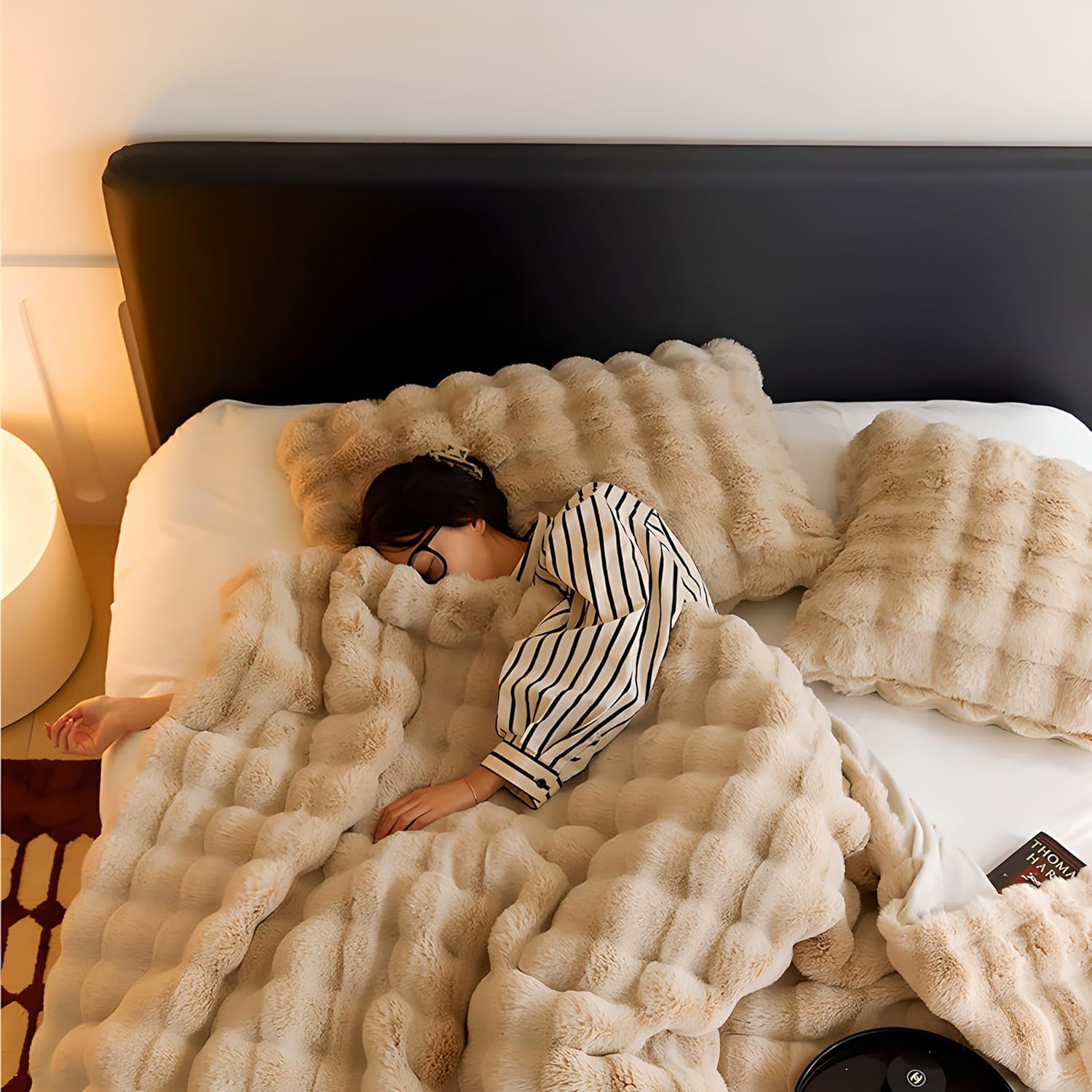 - Luxurious Furry Blanket: Our faux fur throw blanket boast dense texture, which ensuring maximum warm and comfort in your bedroom during chilly night. Its skin-affinity properties make it a nice choice for snuggling up.
