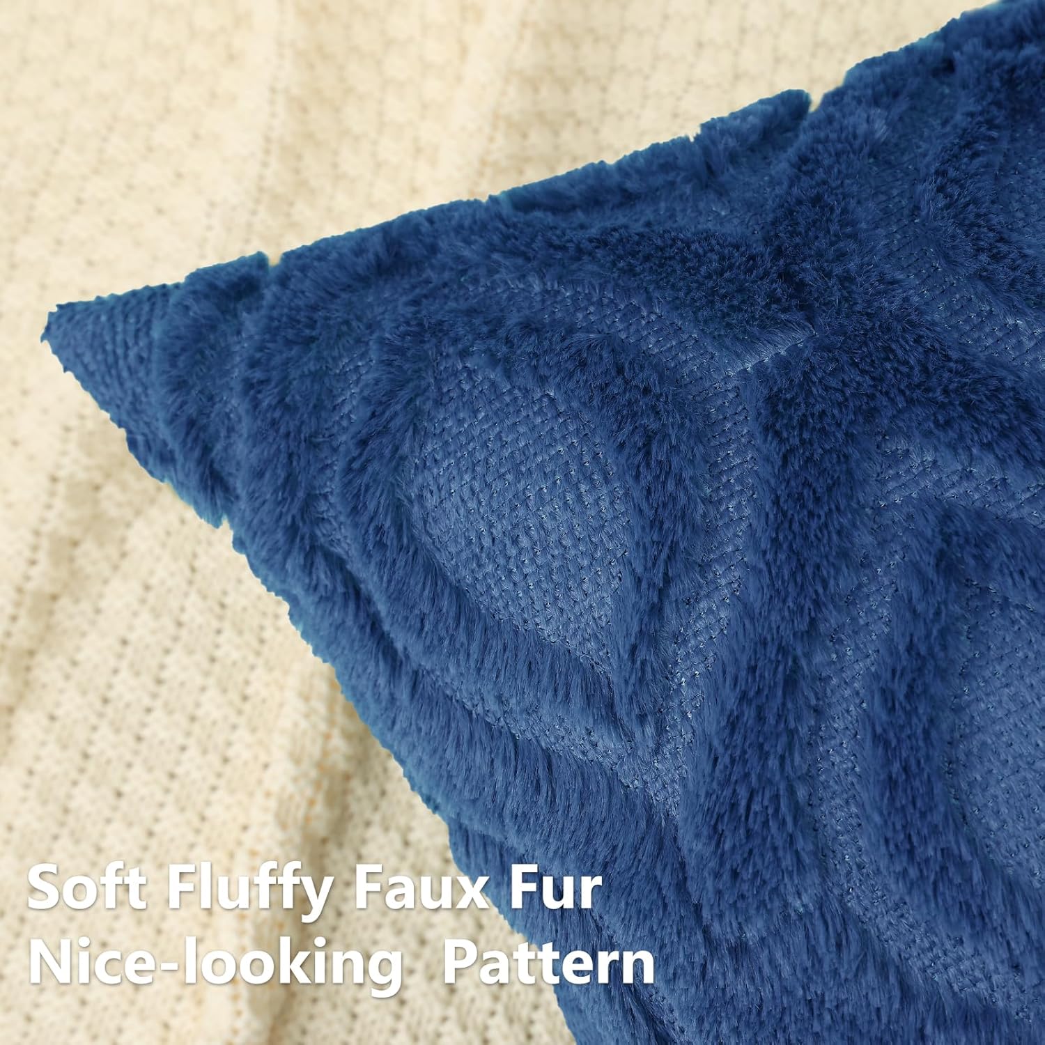 decorUhome Fall Throw Pillow Covers 24x24 Inch Set of 2, Soft Plush Decorative Faux Fur Dark Blue Solid Couch Pillow Covers, Accent Farmhouse Neutral Square Euro Pillow Cases for Sofa Bed Living Room