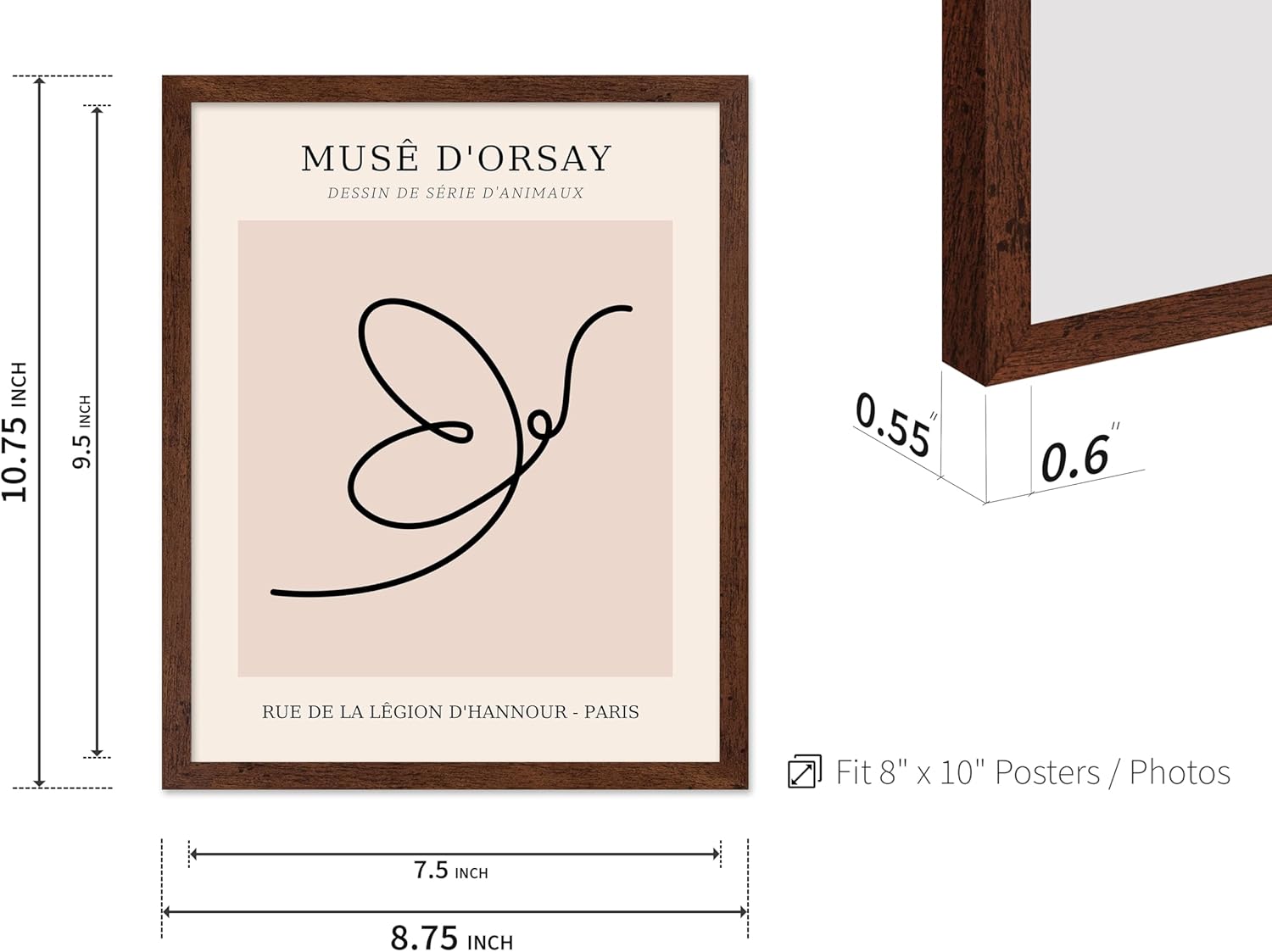 Poster Master Vintage Poster - Retro One Line Butterfly Drawing Print - Butterfly Line Art - Minimal Gift for Him, Her, Animal Lover - Abstract Decor for Home, Office, 8x10 Brown Framed