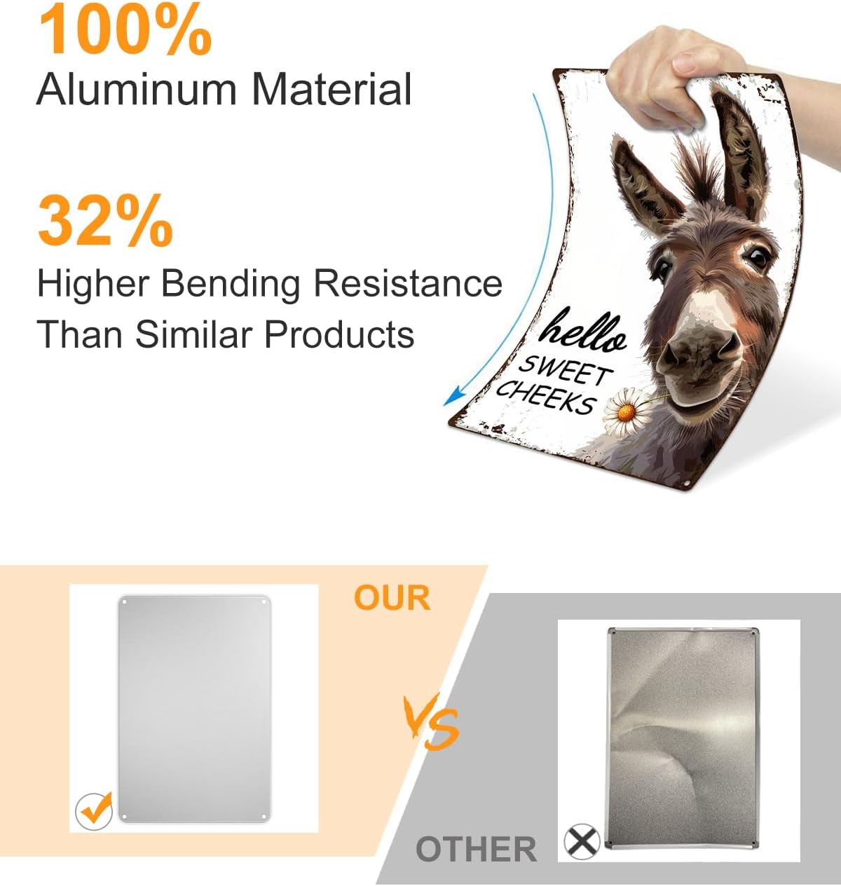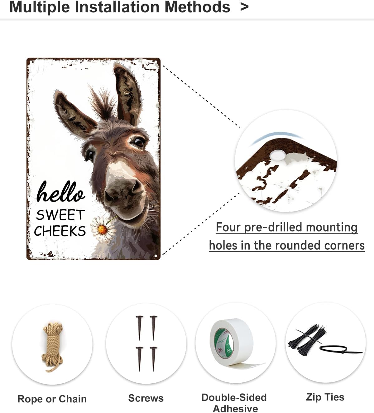 ALKB Western Bathroom Decor Vintage Donkey Gift - Funny Bathroom Restroom Toilet Decoration - Hello Sweet Cheeks Metal Sign 8x12 Inch