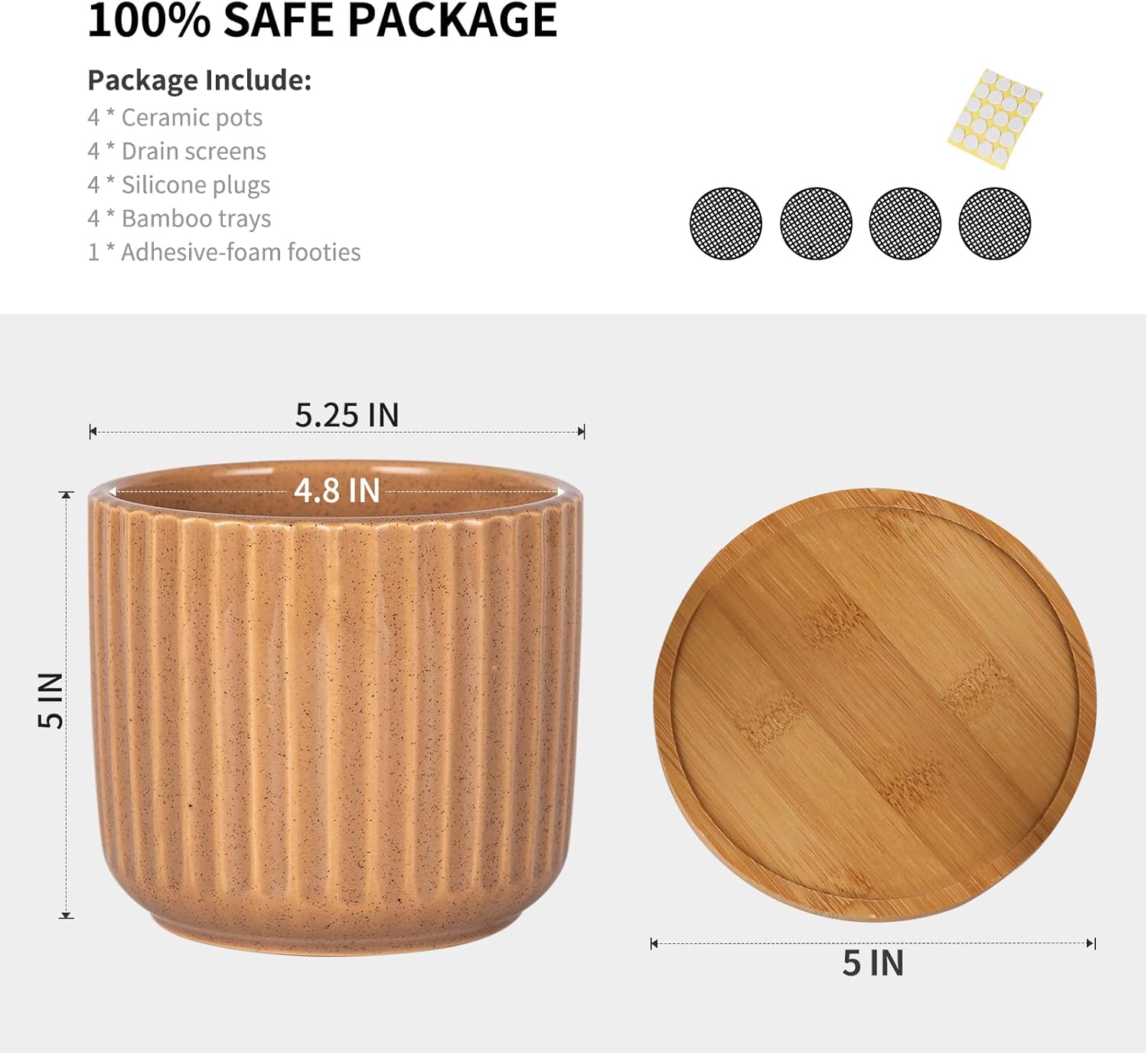 - Medium Size - 5.25" diameter x 5" height is a perfect size for many plants' thrive. Great for indoor plants, snake plants, succulent plants, flowers or a few artificial plants. (NOTE: Plants NOT Included, this product may be in 0.05 inches out.)