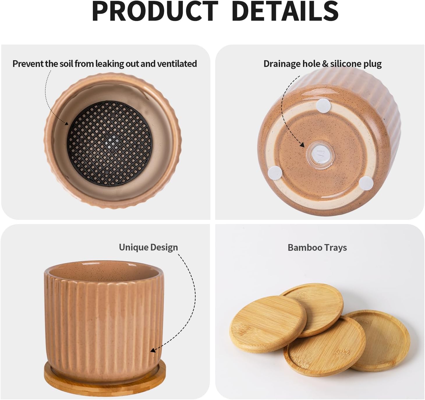 - Drainage Hole / Plug and Mesh Pad - With a drainage hole,allow execs water to drain away in time.which can make your plants breath more freely. Mesh pad keep soil from migrating out of the pot drain, and keeping the hole unblocked for a long time. You also could use the pot with the plug if you don't need the drain.