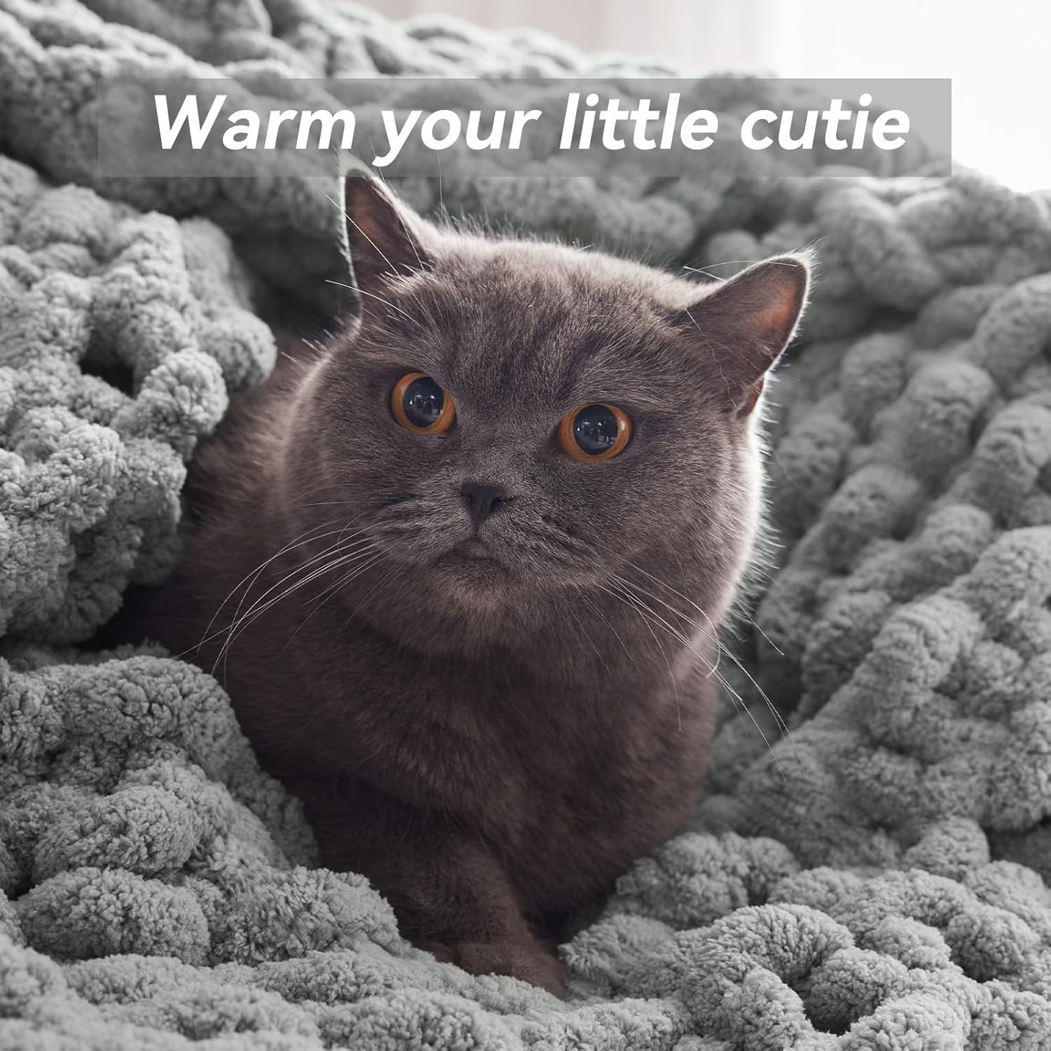 Chunky Knit Throw Blanket, 50''*60'' Knitted Throw Chenille Yarn for Bed Couch, Handmade Light Grey Crochet Big Thick Blanket, Machine Washable Cute Comfy Blanket for Home Decor