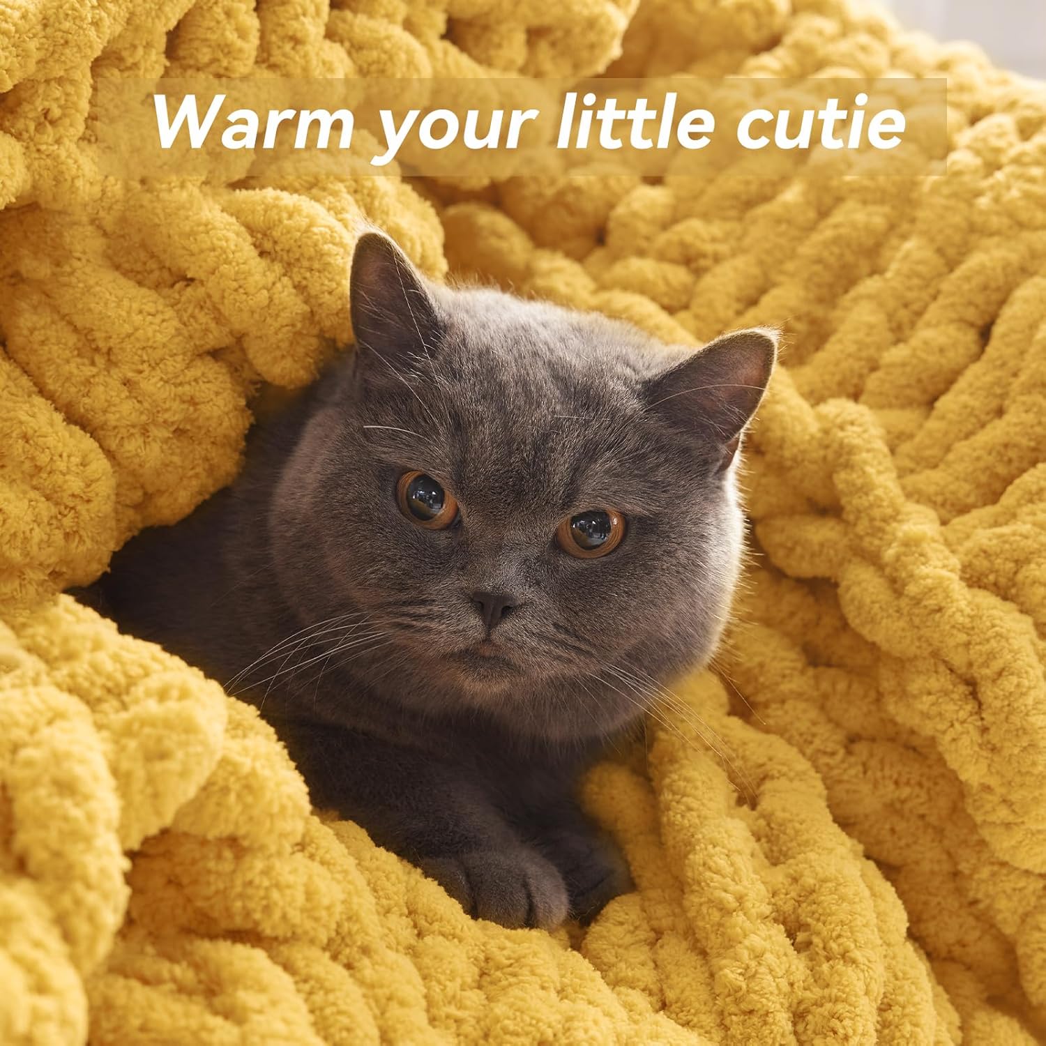 Chunky Knit Throw Blanket, 40''*50'' Knitted Throw Chenille Yarn for Bed Couch, Handmade Yellow Crochet Big Thick Blanket, Machine Washable Cute Comfy Blanket for Home Decor