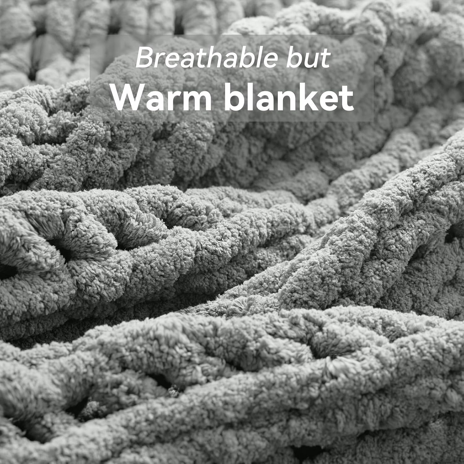 Chunky Knit Throw Blanket, 40''*50'' Knitted Throw Chenille Yarn for Bed Couch, Handmade Light Grey Crochet Big Thick Blanket, Machine Washable Cute Comfy Blanket for Home Decor