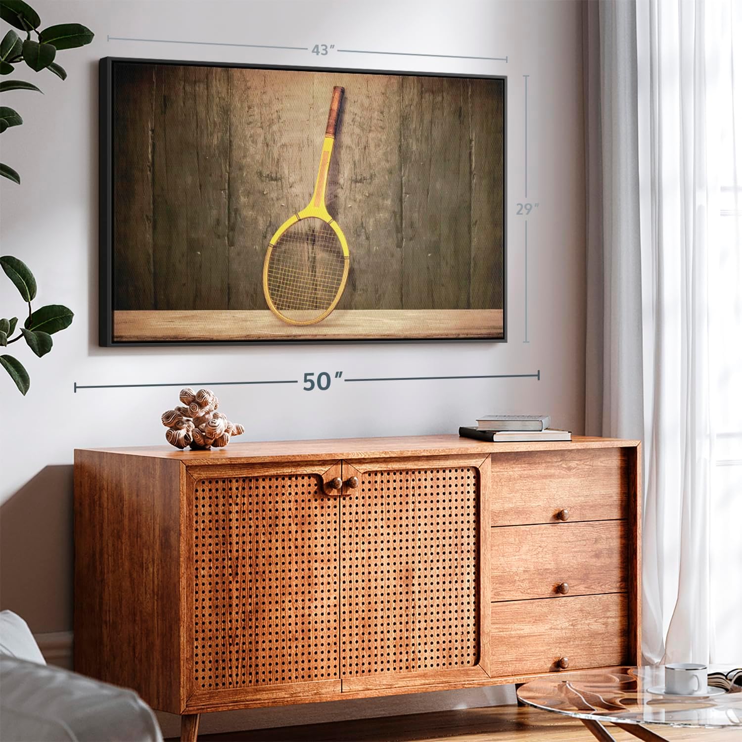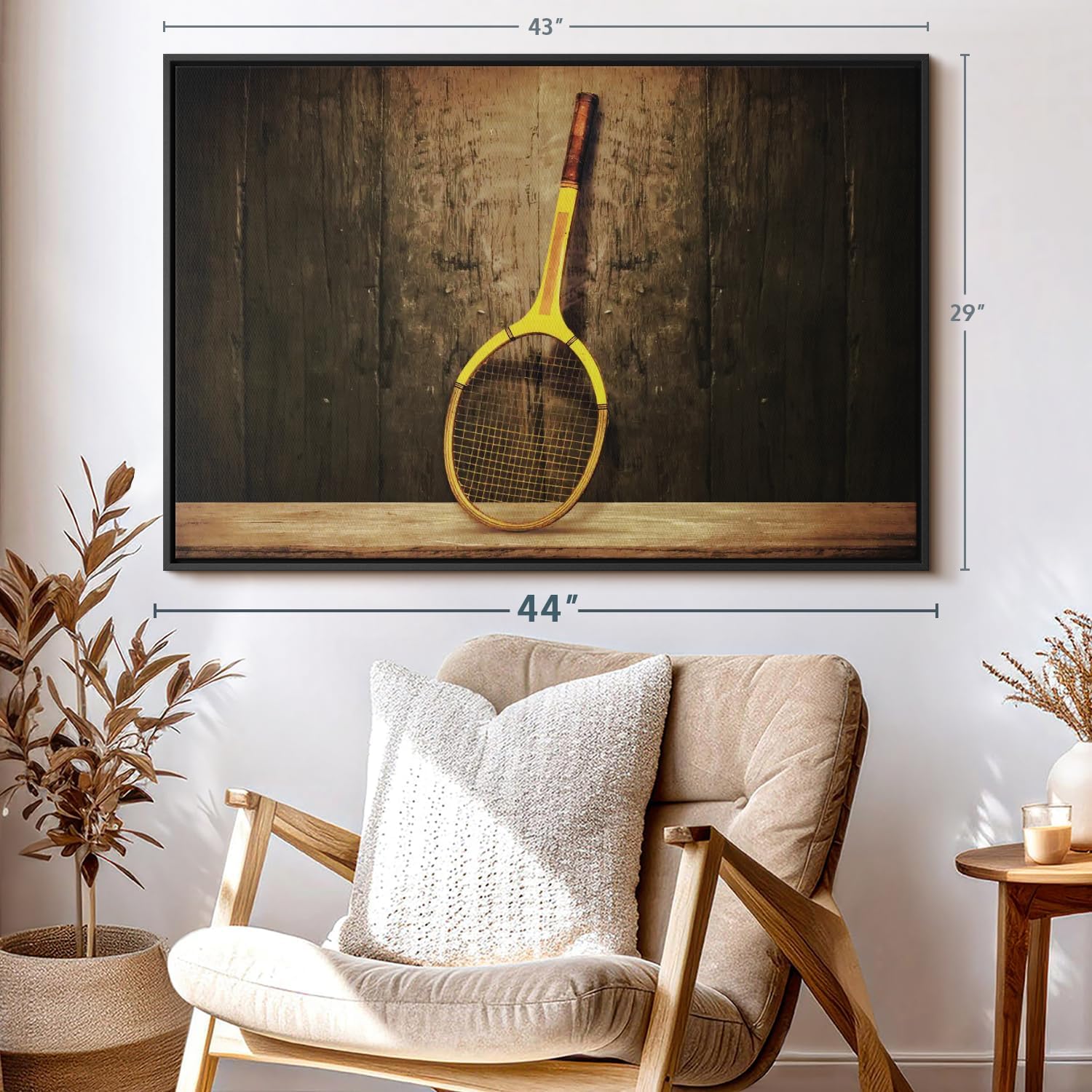 - Durable Canvas Features - Our long-lasting racket sports 1-Piece canvas is made from a non-fading UV and Humidity-resistant 330 GSM Polyester Canvas. This Vintage Tennis Racket canvas can be used as a modern living room wall art.