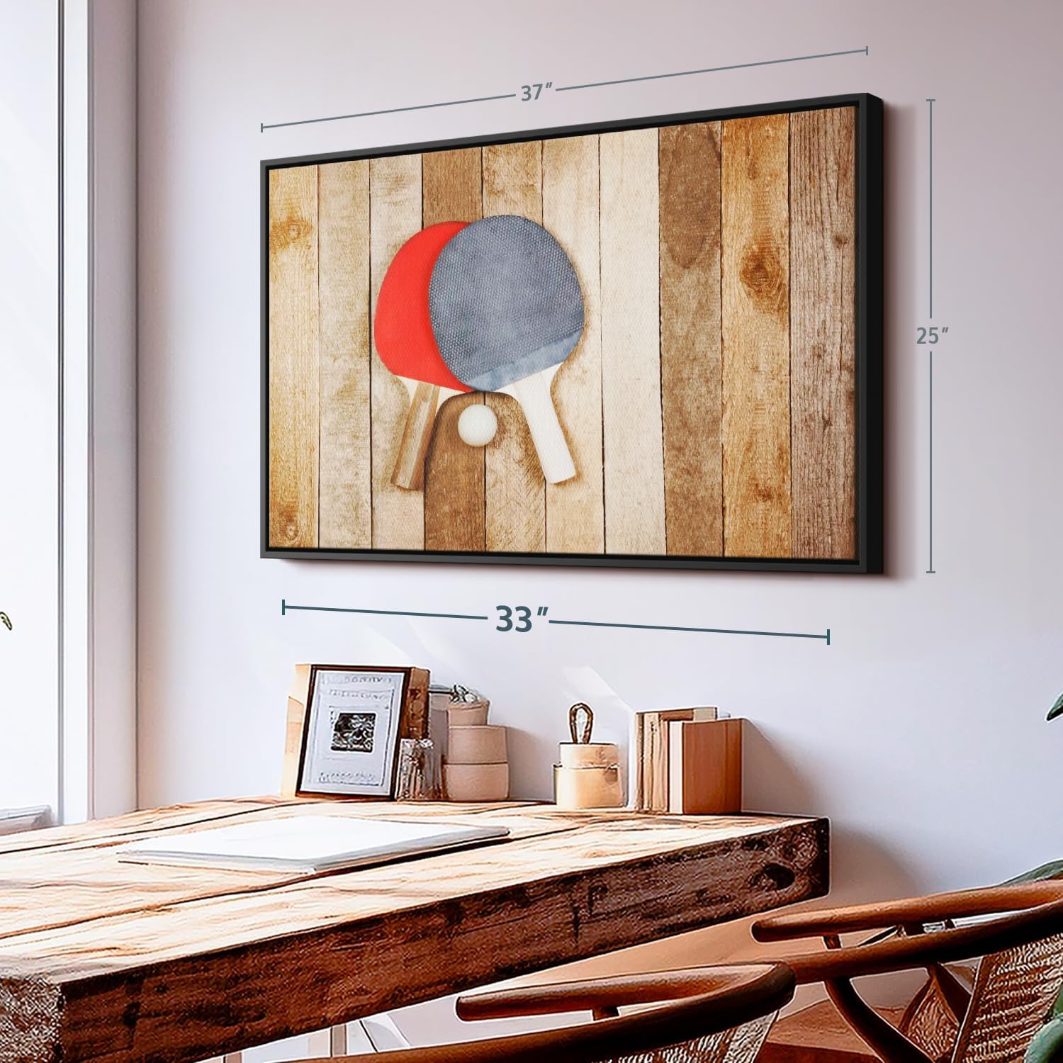 - Durable Canvas Features - Our long-lasting racket sports 1-Piece canvas is made from a non-fading UV and Humidity-resistant 330 GSM Polyester Canvas. This Wooden Ping Pong canvas can be used as a minimalist living room wall art.
