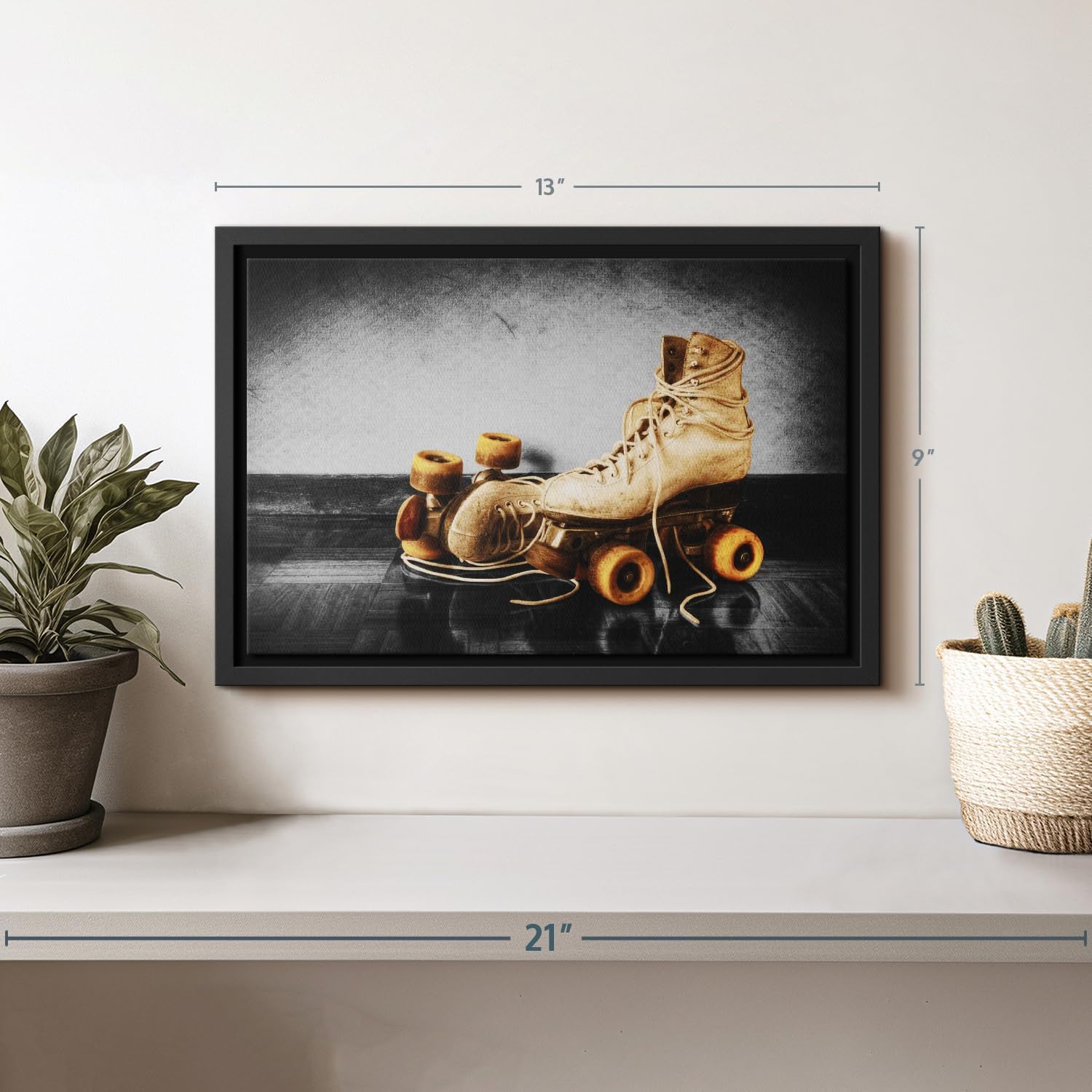 ElephantStock Vintage Skates Pop Wall Art - Horizontal Framed Canvas - 1-Piece Living Room Wall Decor - Sport Photography Canvas Print - Beige and Black Decor for Wall - 13" X 9"