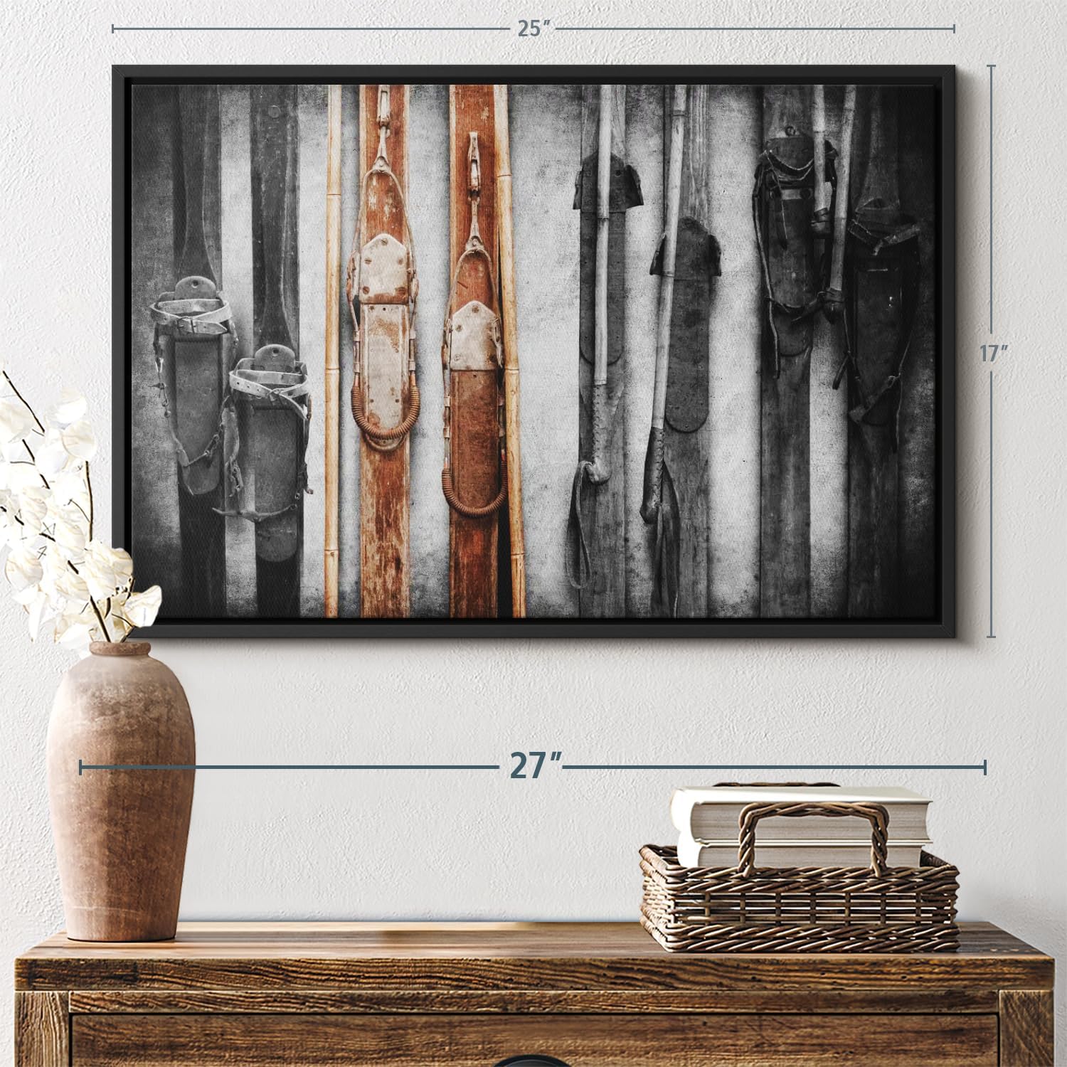 ElephantStock Ski Collection Wall Art - Horizontal Framed Canvas - 1-Piece Bathroom Wall Decor - Photography sports Canvas Print - Brown and Black Decor for Wall - 25" X 17"