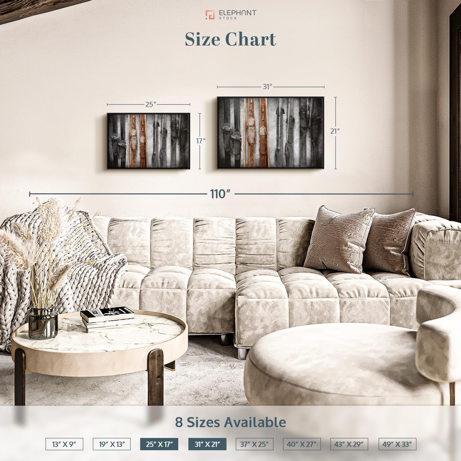 - Durable Canvas Features - Our long-lasting winter sports 1-Piece canvas is made from a non-fading UV and Humidity-resistant 330 GSM Polyester Canvas. This Ski Collection canvas can be used as a masculine living room wall art.