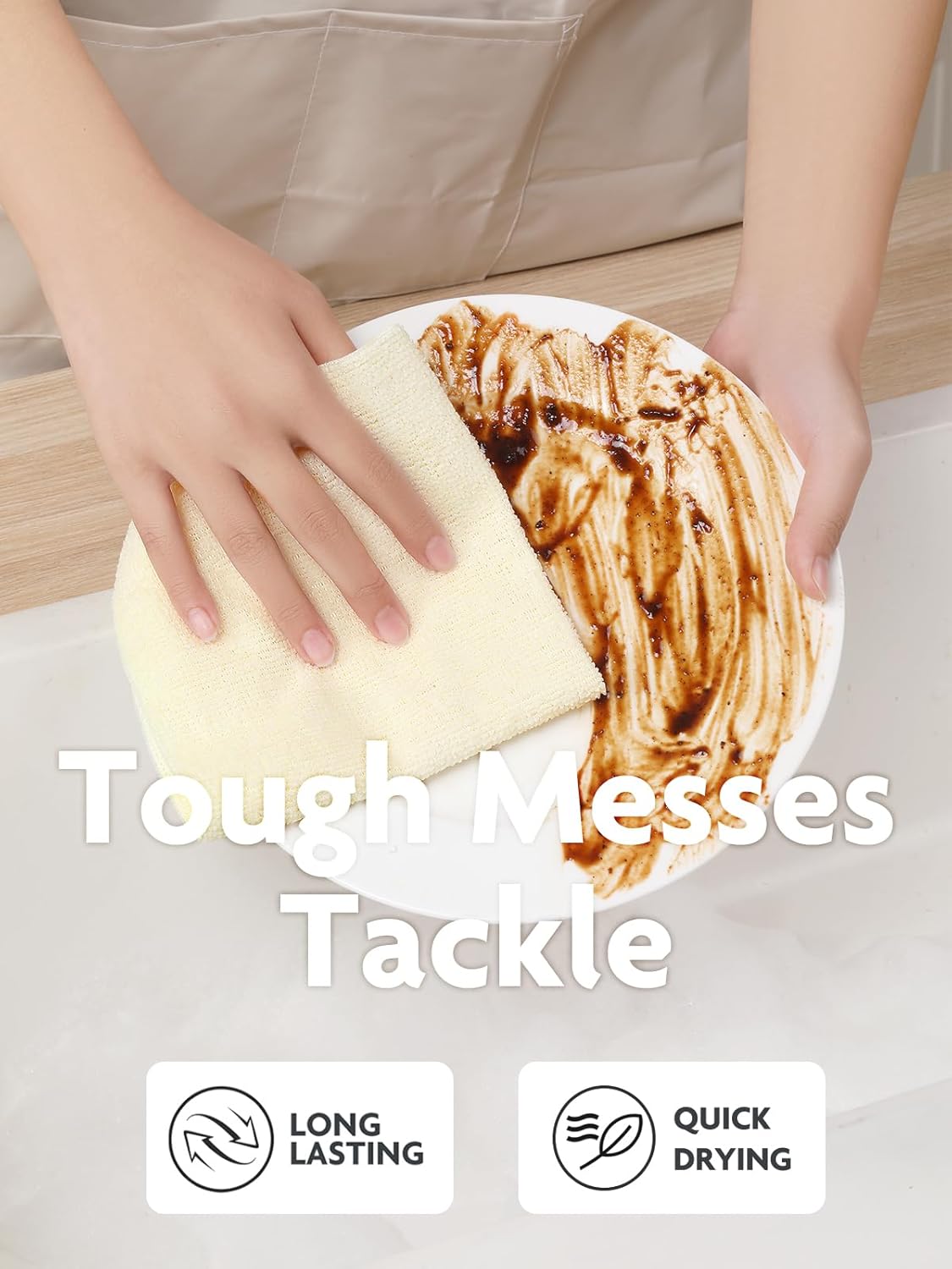 - [Alternative to Paper Towels] Designed for durability, the cloths are washable and reusable up to 50 times. The sturdy 175gsm microfiber will be a highly effective cleaning results