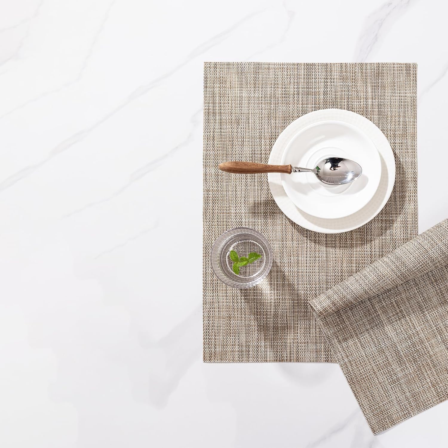 - PERFECT FOR INDOOR AND OUTDOOR:The wipeable placemat is two yarns over two, resulting in a quieter,less textural surface.The neutral color scheme and the classic size (about 12*17 inch)makes the whole table elegant and stylish full of texture!