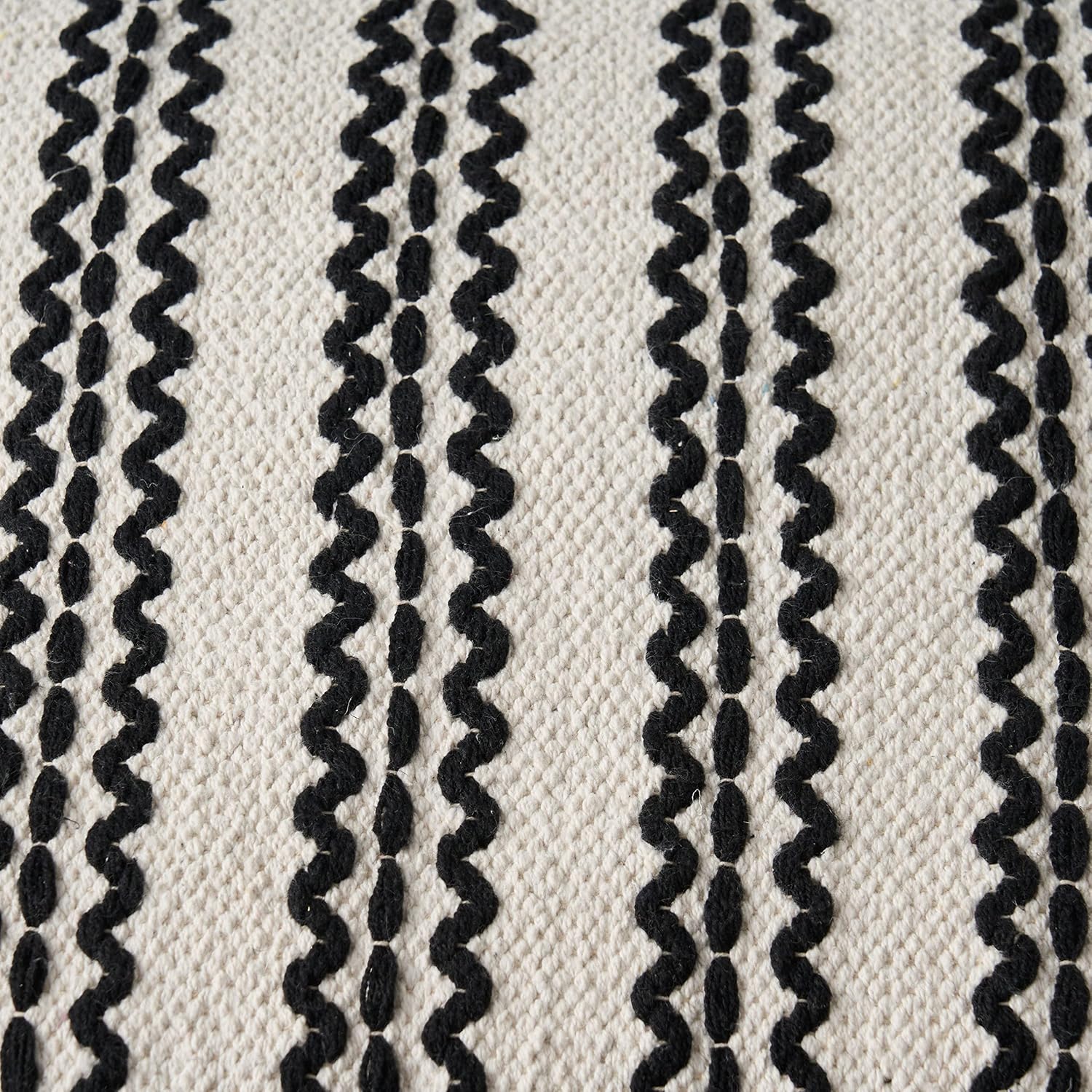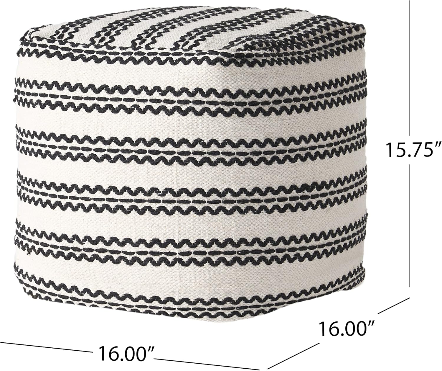 GDFStudio Boho Handmade Fabric Cube Pouf Ottoman Foot Stool - Bean Bag Floor Chair - Foot Rest Couch for Living Room Bedroom,Natural and Black,16" x 16" x 15.75"