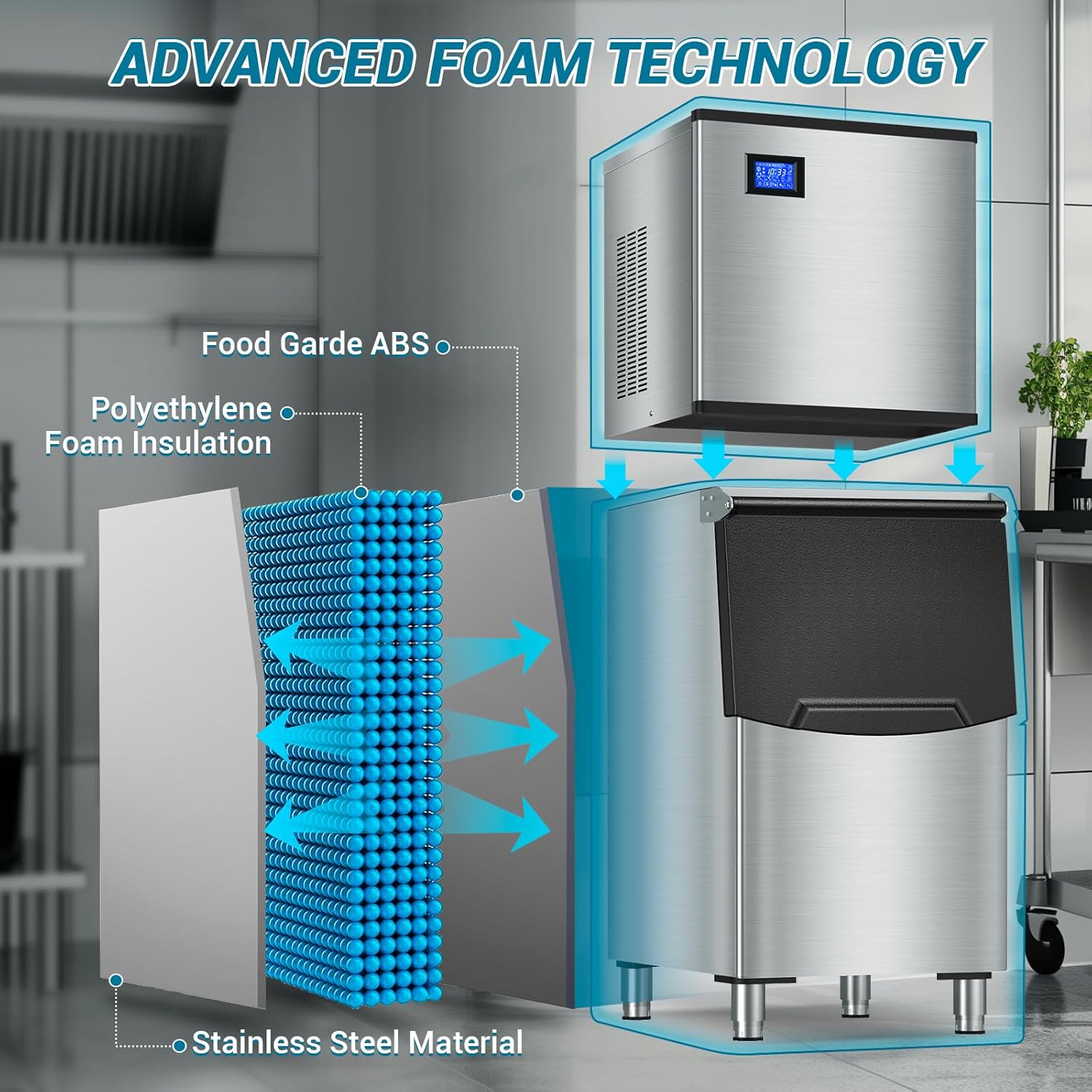 - Long-lasting Insulation and Food-Safe Design - The insulation material used in the ice storage bin can maintain insulation performance for a long time, and the food-grade PP liner inside the machine ensures a clean and sanitary environment for ice production, meeting health and safety standards.
