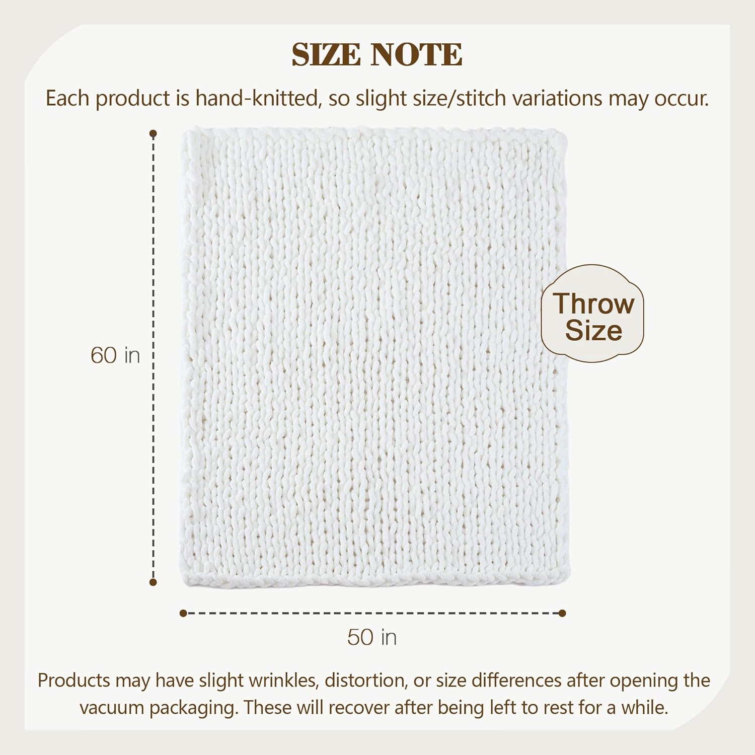 Carriediosa Chunky Knit Throw Blanket 50" X 60", 100% Hand Made Large Chenille Loop Yarn Soft Fluffy Throws for Couch Sofa Bed, Big Crochet Cozy Heavy Thick Cable Woven Blankets, Snow White