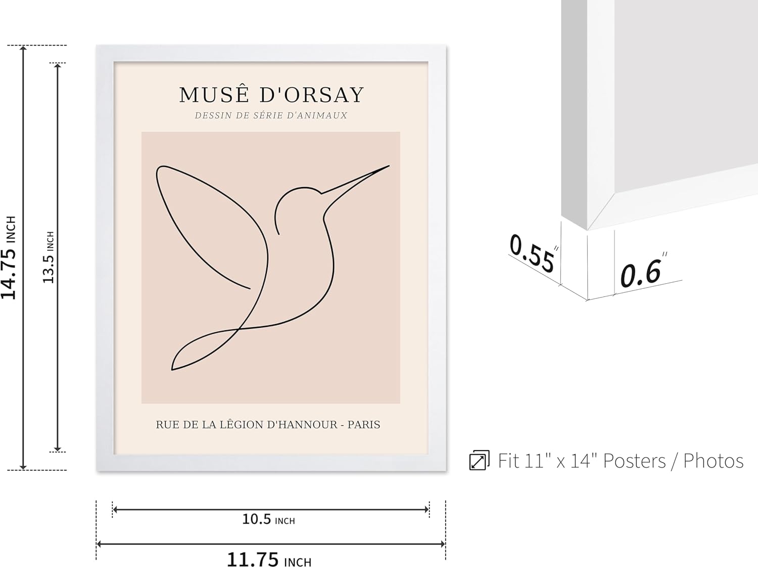 Poster Master Vintage Poster - Retro One Line Hummingbird Drawing Print - Bird Line Art - Minimal Gift for Him, Her, Animal Lover - Abstract Decor for Home, Office, 11x14 White Framed
