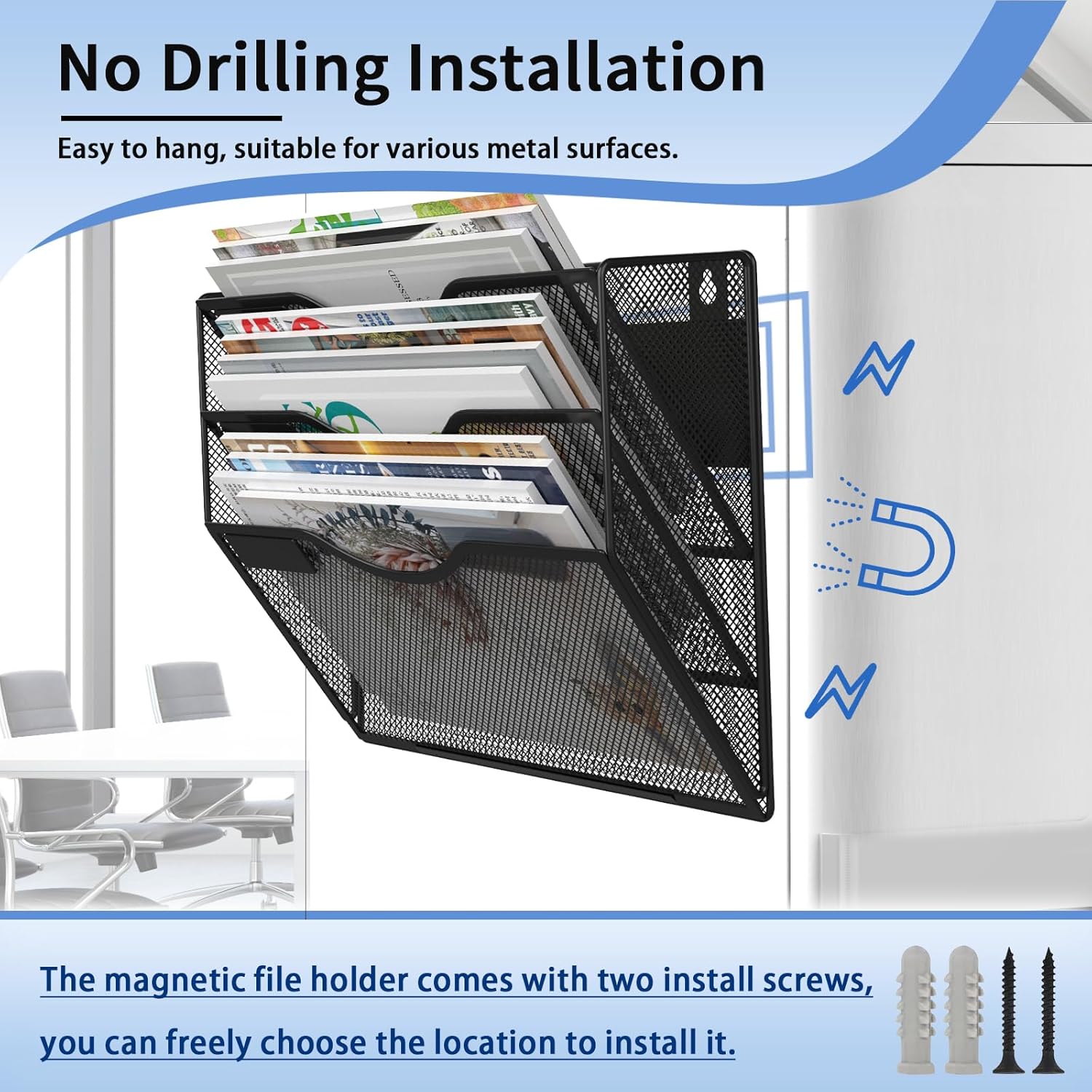 - 【Durable Metal Construction】Crafted from high-quality metal with an attractive mesh wire design, this magnetic hanging file organizer features a durable powder coat finish that is resistant to oxidation and rust. Please exercise caution when removing the product from an iron surface due to its strong magnetic force.
