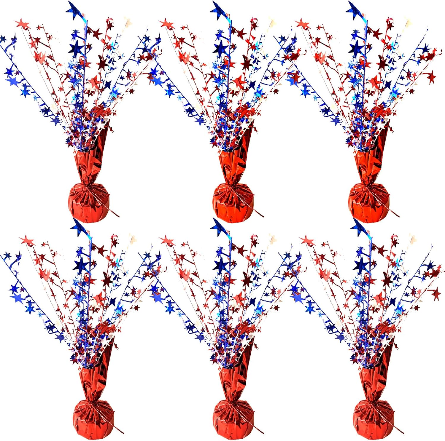 6 Pack 4th of July Table Centerpiece Decoration Metallic Foil Spray Star Burst Patriotic Decoration Independence Day Labor Day Veteran Day Memorial Day Party Supplies, Red White and Blue