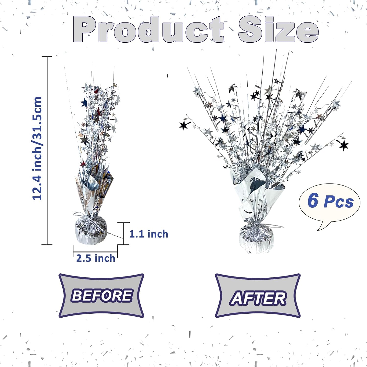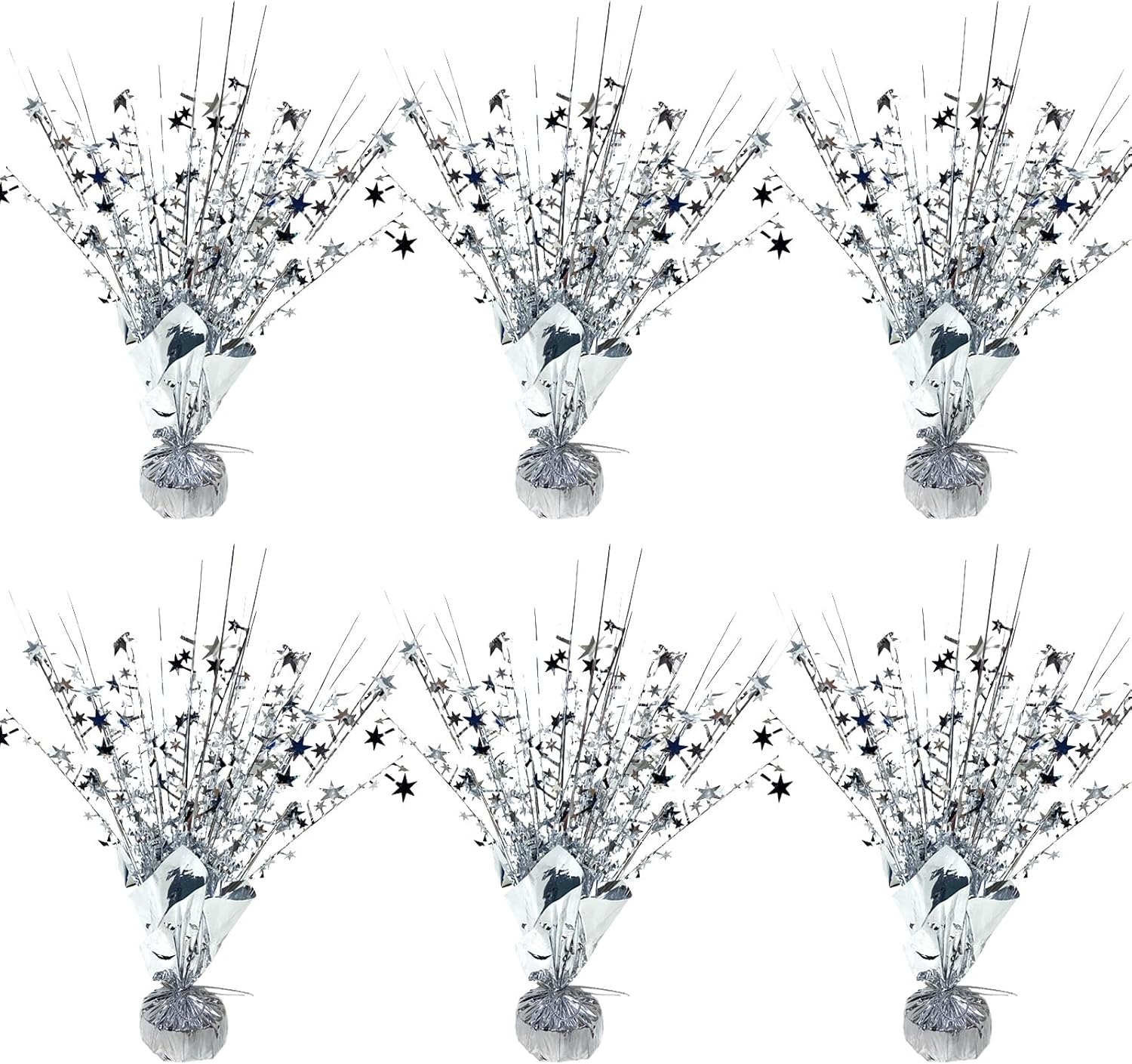 6 Pack Metallic Foil Spray Centerpiece Star Table Decoration Burst Table Centerpieces for Birthday Wedding Anniversary Graduation Holiday Party Supplies Decor, Silver