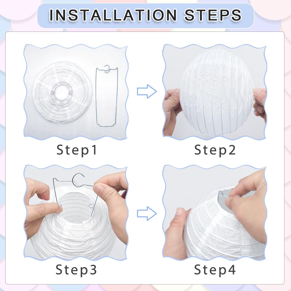 - γEasy to assembleγ: Our lanterns are easy to unfold, assemble and hang up, and they can be folded flat for storage. All you need to do is to pull the two ends gently to open the lantern and insert the metal frame (included in the pack) into the lantern to keep its shape.