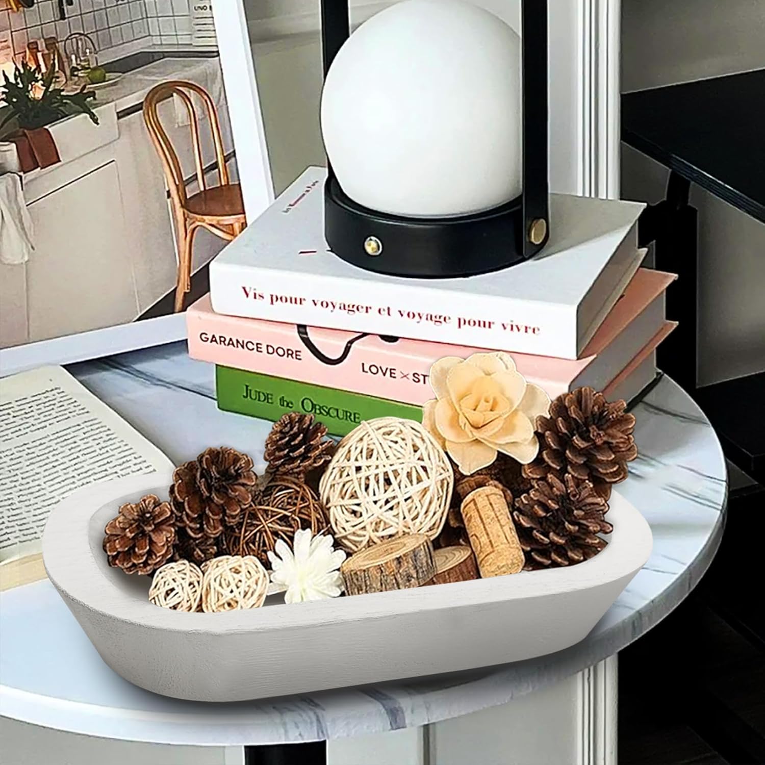 Royxen 8 Pack Wood Dough Bowl, Wooden Dough Bowls Paulownia, Rustic Bowl Vintage, Bowls for Candle (White, 9.5" x 5.5")