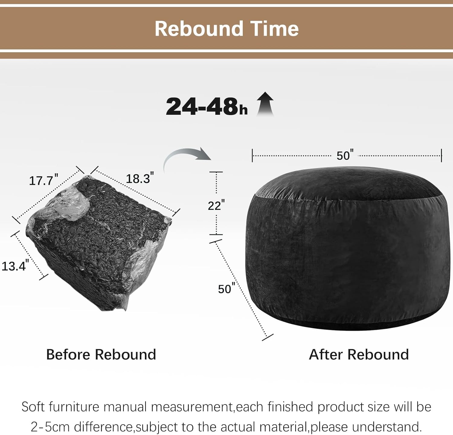 - BEAN BAG FILLER: Stuffed block-shaped memory sponge, Padding can be removed and added depending on desired comfort and ease of transport. Different from foam, the high-rebound sponge is still comfortable and does not sag even after sitting for a long time. Due to its compression upon arrival, it may be necessary to wait for the sponge to become fluffy and fully rebound.