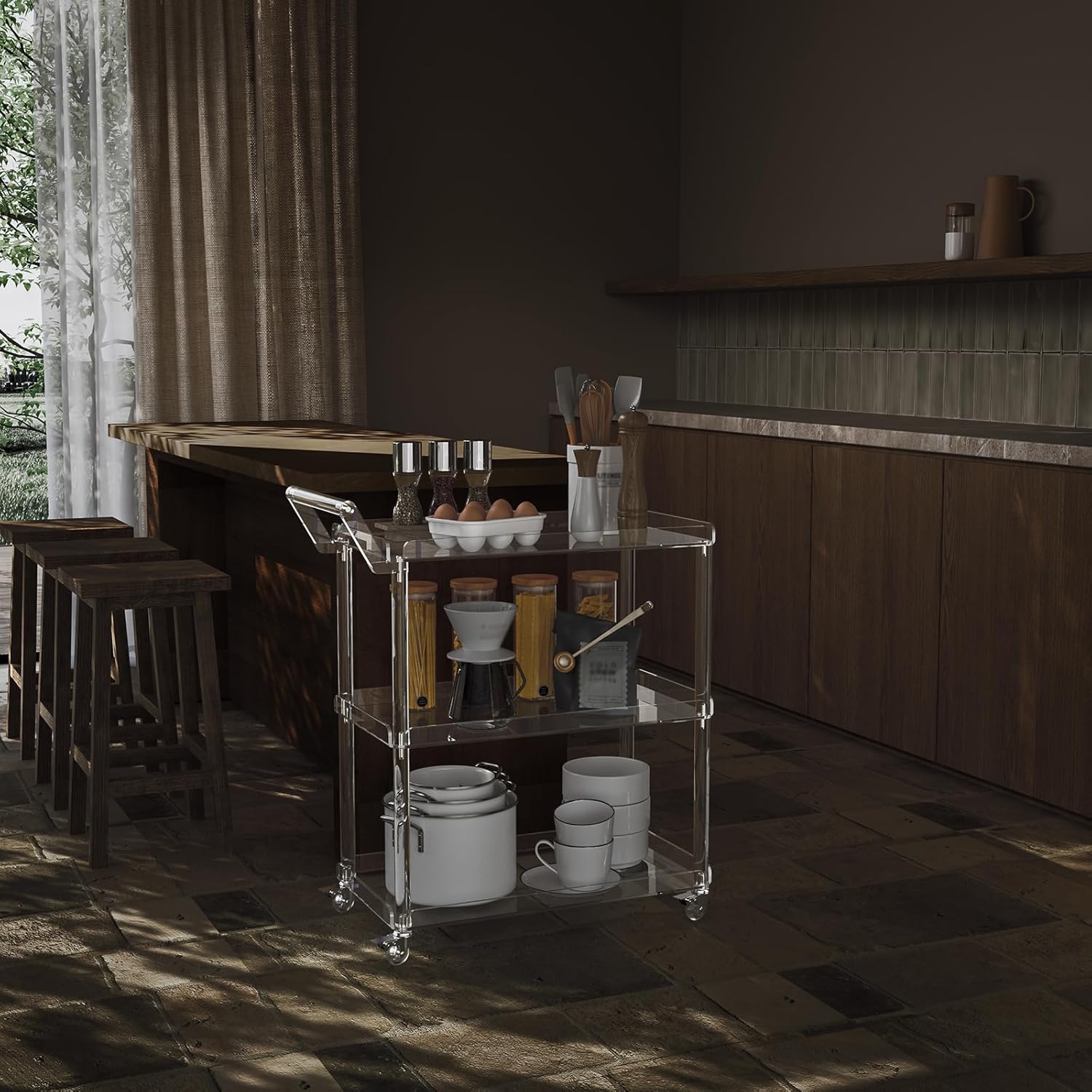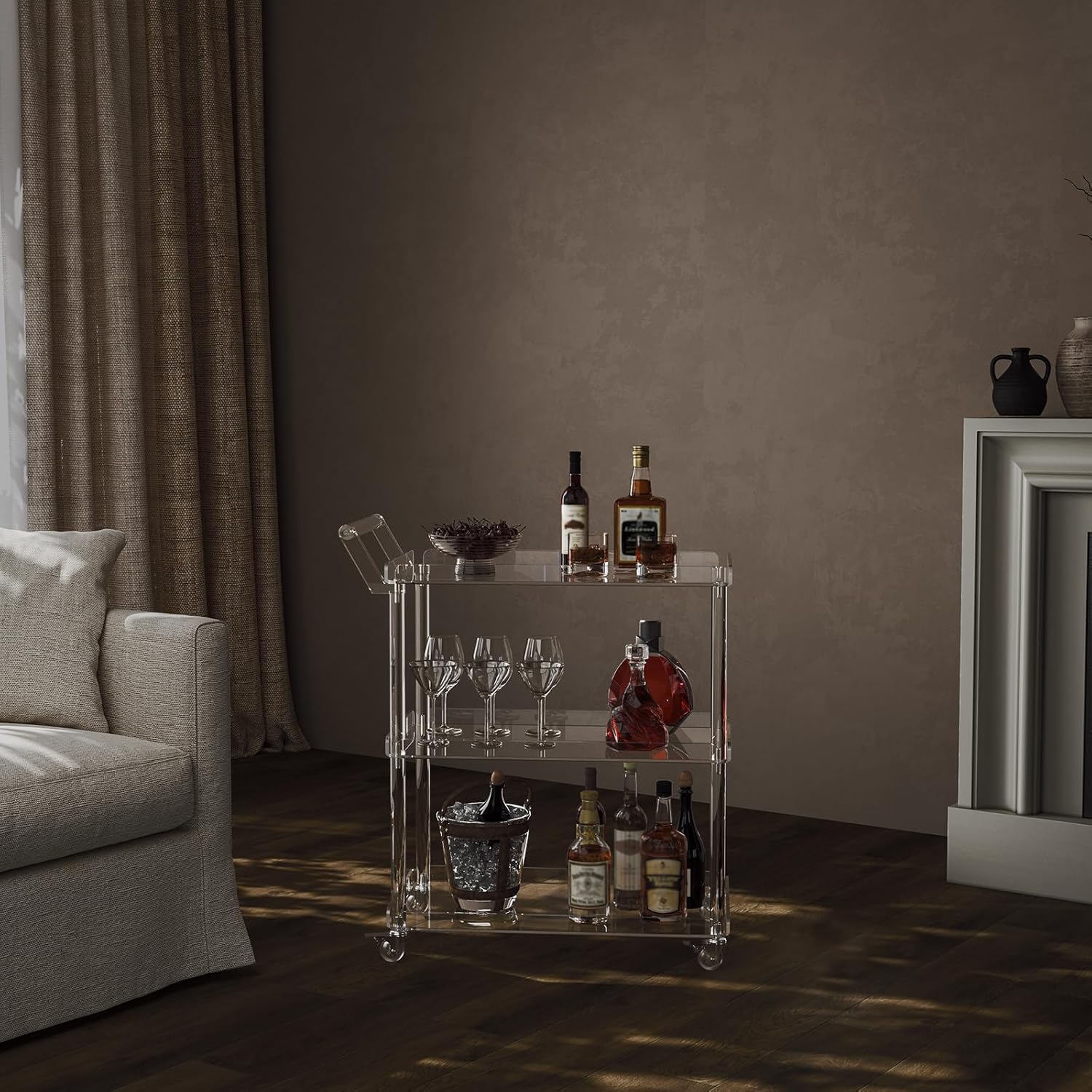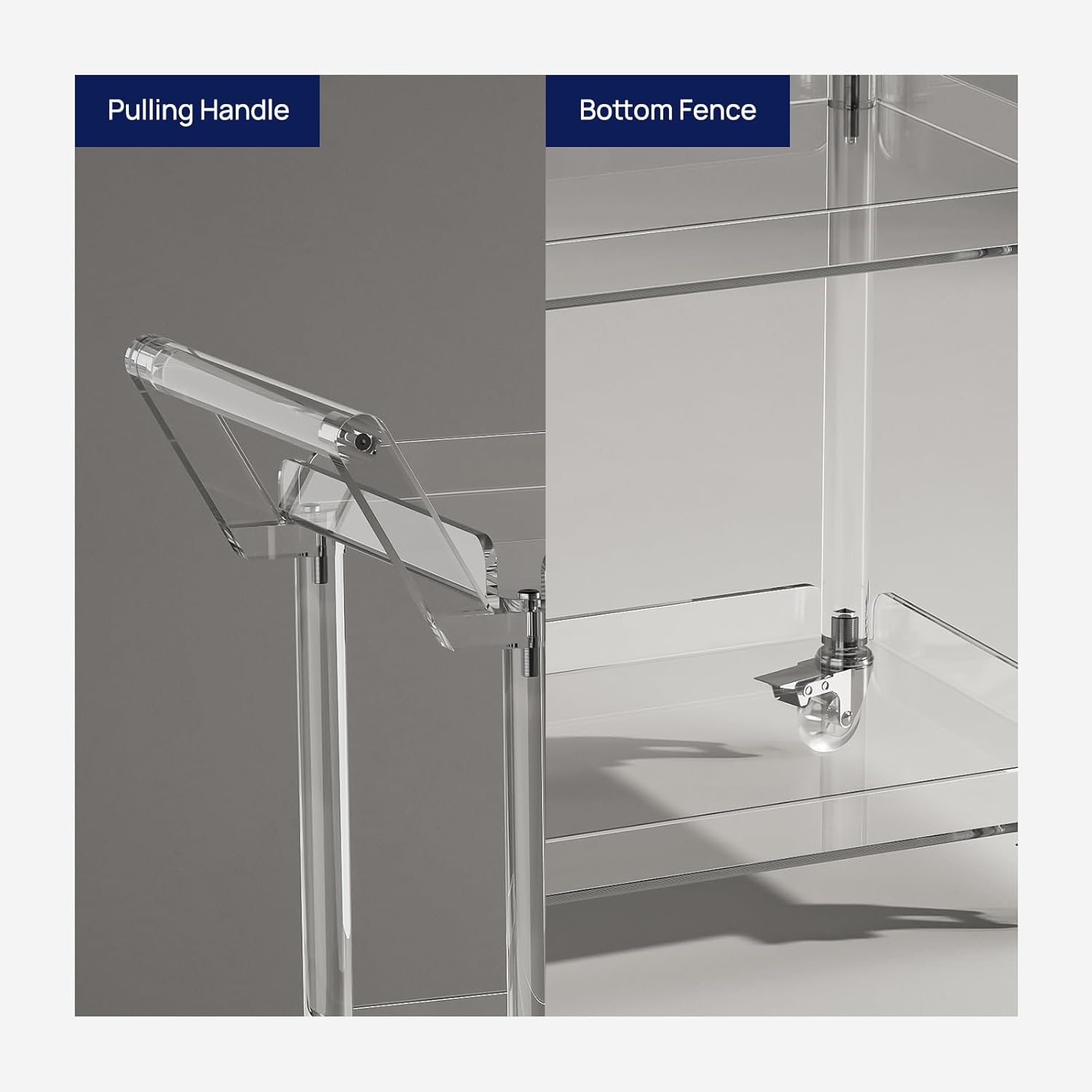 - A Functional Cart:This acrylic cart can work as a storage cart in kitchen,living room,dining room and so on.Modern style fits many occasions. Save your space and make your home more tidy, clean, and comfortable.