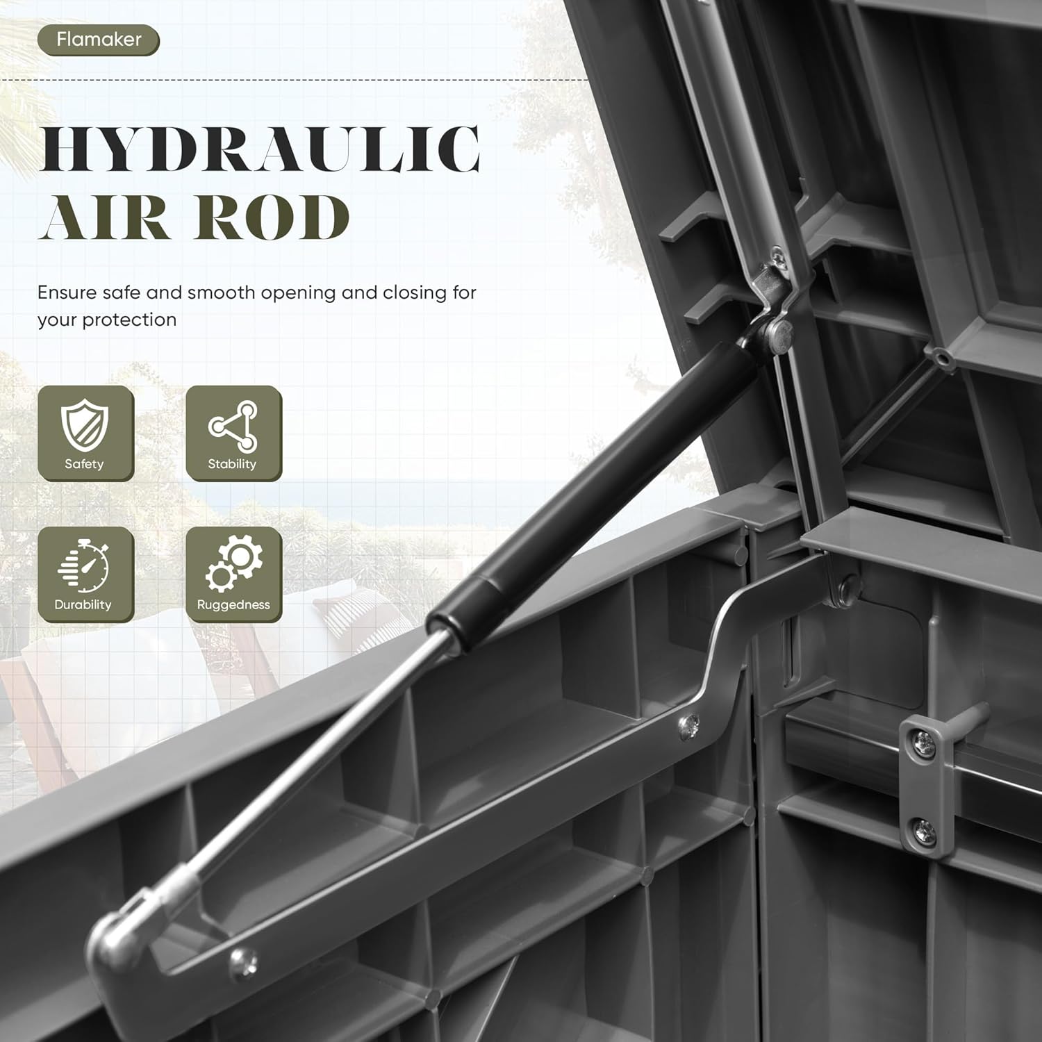 Flamaker Resin Deck Box 120 Gallon Waterproof Large Outdoor Indoor Storage Box Imitation Wood Resin for Patio Furniture Garden Tools and Pool (Gray)