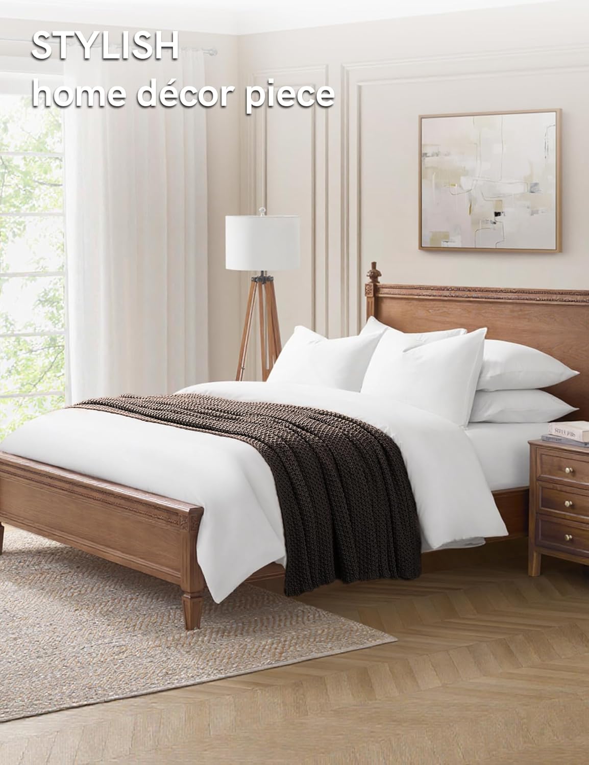 YnM Chunky Cotton Knit Throw Blanket, Cable Knit Throws for Bed Couch Sofa, Comfy & Relaxing, Decorative Piece for Farmhouse Modern Boho Rustic Scandinavian Chic Vibe, Chocolate Brown 80x87 Inches