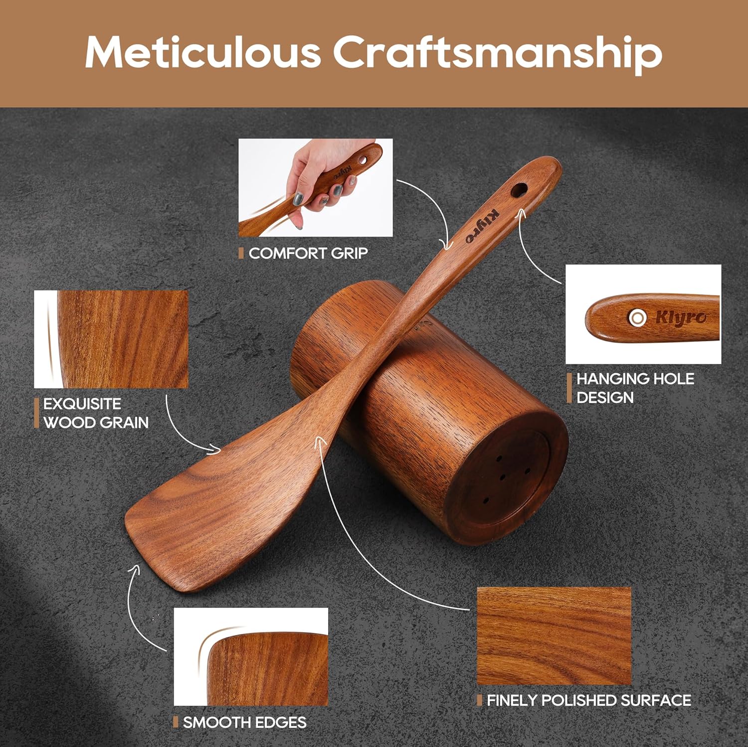 - PREMIUM WOOD β Our kitchen utensils set are made from premium quality solid wood, which is known for its high density, strength and fine grain, ensuring that it won't crack or melt during use, while the natural richness of the wood grain enhances the aesthetics of the kitchen. (Natural wood may have color differences, which is normal.)