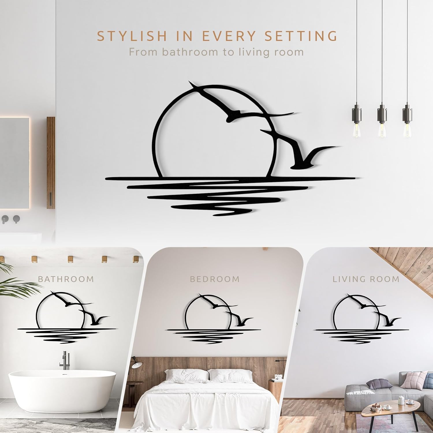 Wita Home Sunset with Seagulls Metal Wall Mounted Art, Handcrafted Metal Home Decor with Static Powder Coating, Eye-Catching Addition to Living Room Decor, Modern Beach Decor for Indoor and Outdoor Spaces, Perfect Housewarming Gift (24 x 12 inches)