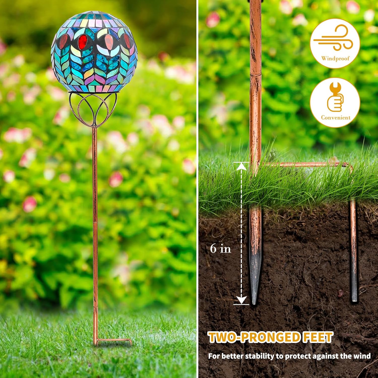 - Unique design: Solar mosaic stake adds fun to your garden, patio or pathway. Artistry mosaic ball can reflect light via crackle-like glass from every angle under the sun