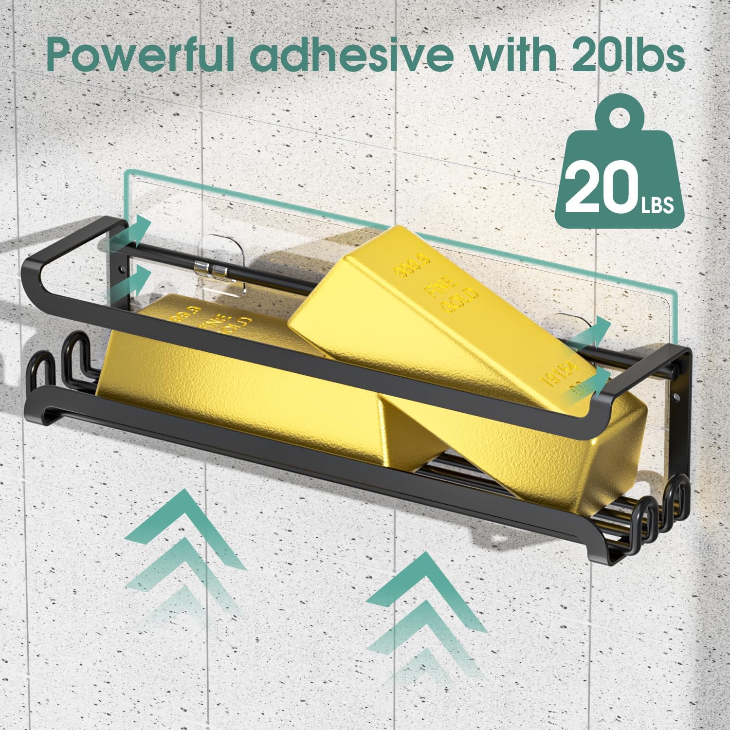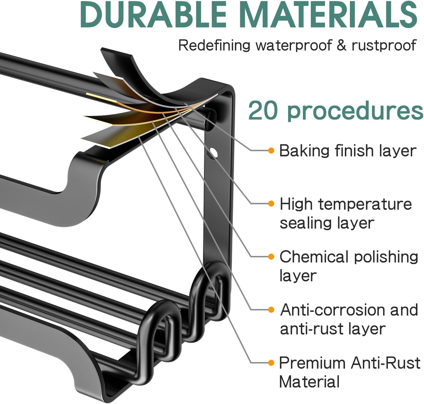 LUCYCAZ 4 Pack Wall Mounted Spice Rack with 16 Hooks, Spice Organizer Shelf for Stove Cabinet Pantry Door,Screw or Adhesive Spice Shelf Hanging Wall Spice Rack in Kitchen and RV (Black, 4 PACK)