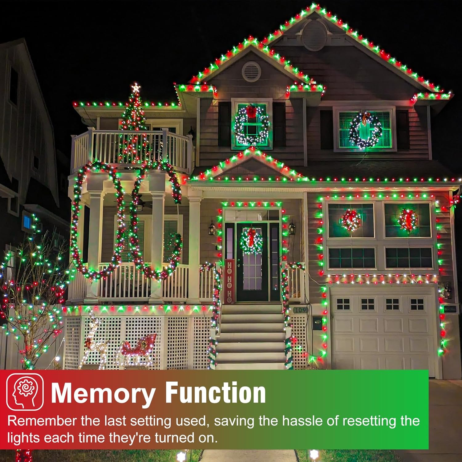 - [Ideal for Holiday Decorations] - The Christmas lights outdoor with green wire blends well with the night, perfect for indoor and outdoor decorations, such as trees, classrooms, yards, gardens, patios, walls, balconies, fences, porches, roofs, lawns and more, creating a joyful and festive atmosphere.